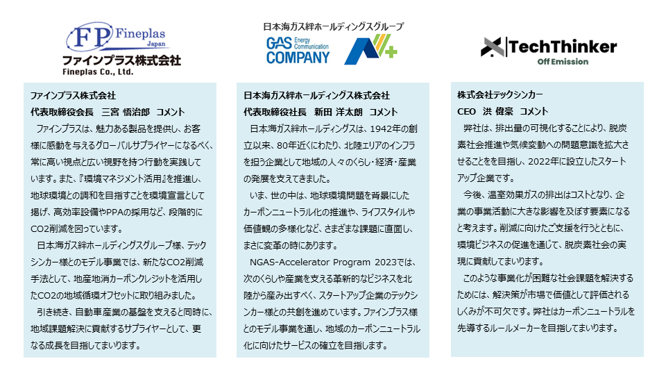 ファインプラス、日本海ガス絆ホールディングスグループ、テックシンカーは、ステークホルダーの皆さまとともに、引き続き、持続可能な社会の実現に貢献してまいります。