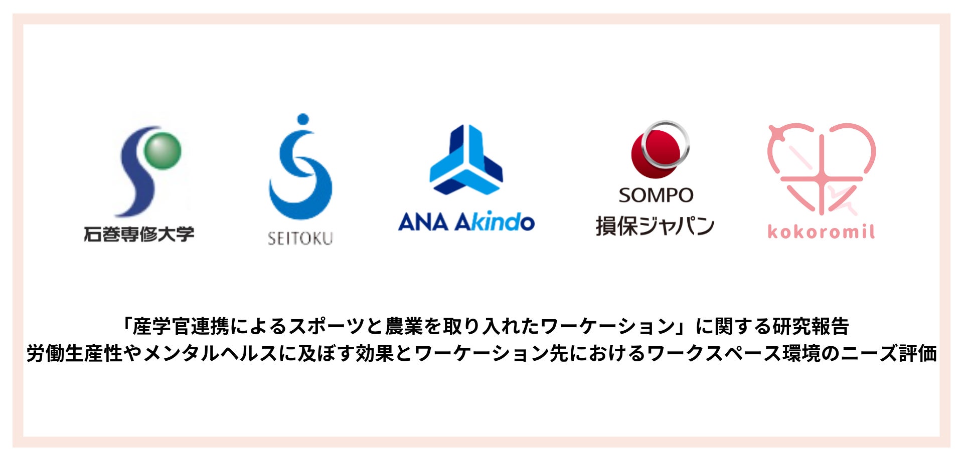 石巻専修大学(学長:尾池 守)、聖徳大学(学長:川並 弘純)、ANAあきんど株式会社(本社:東京都中央区、代表取締役社長:原 雄三、以下「ANAあきんど」)、株式会社ココロミル(本社:東京都新宿区、代表取締役社長:林 大貴、以下「ココロミル」)、損害保険ジャパン株式会社(本社:東京都新宿区、代表取締役社長:石川 耕治、以下「損保ジャパン」)、美津濃株式会社(本社:大阪府大阪市、代表取締役社長 水野 明人、以下「ミズノ」)、および山口県(知事:村岡 嗣政)は「産学官連携によるスポーツと農業を取り入れたワーケーション※1」についての実証研究を2023年11月から12月に山口県宇部市で実施しました。
