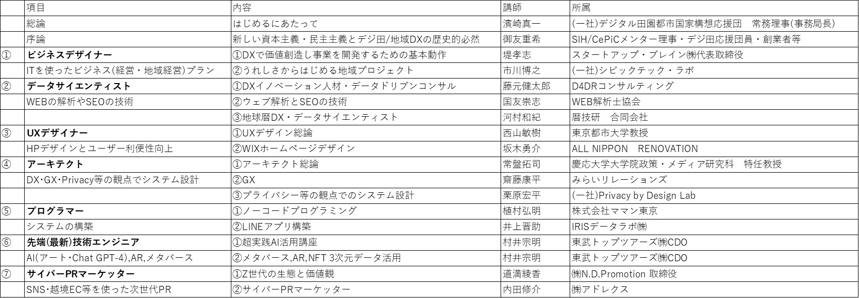 <地域DXプロデユーサー 一つ星 アーリースタートプラン 講座内容>