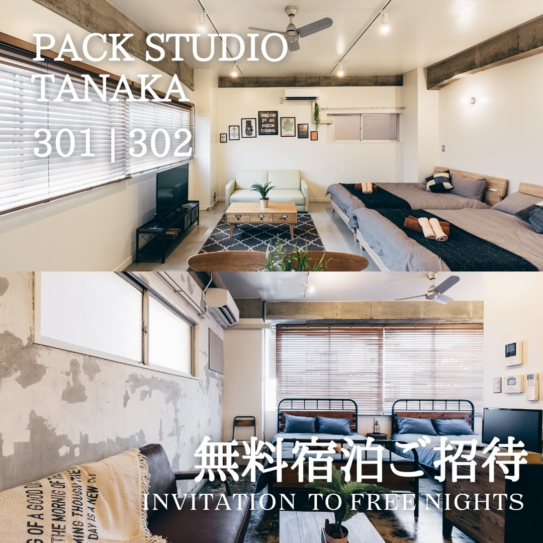 日頃の感謝の気持ちを込めまして、「大阪無料宿泊券プレゼント第2弾」を開催します。「PackStudioTanaka(301/302)」に2組様をご招待!無料で宿泊できるチャンスです!