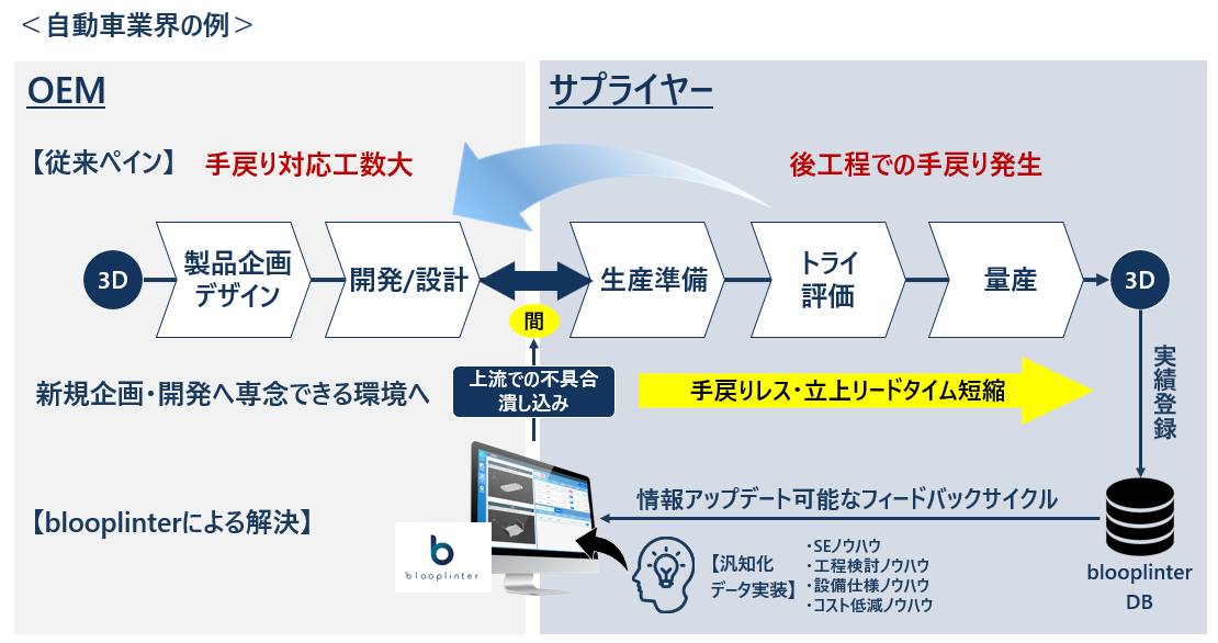今回リリースした「blooplinter」はフロントローディングを強力に支援する3Dプラットフォームとして、多くの製造業の現場をサポートし、企業全体の成長に寄与することを目指しております。