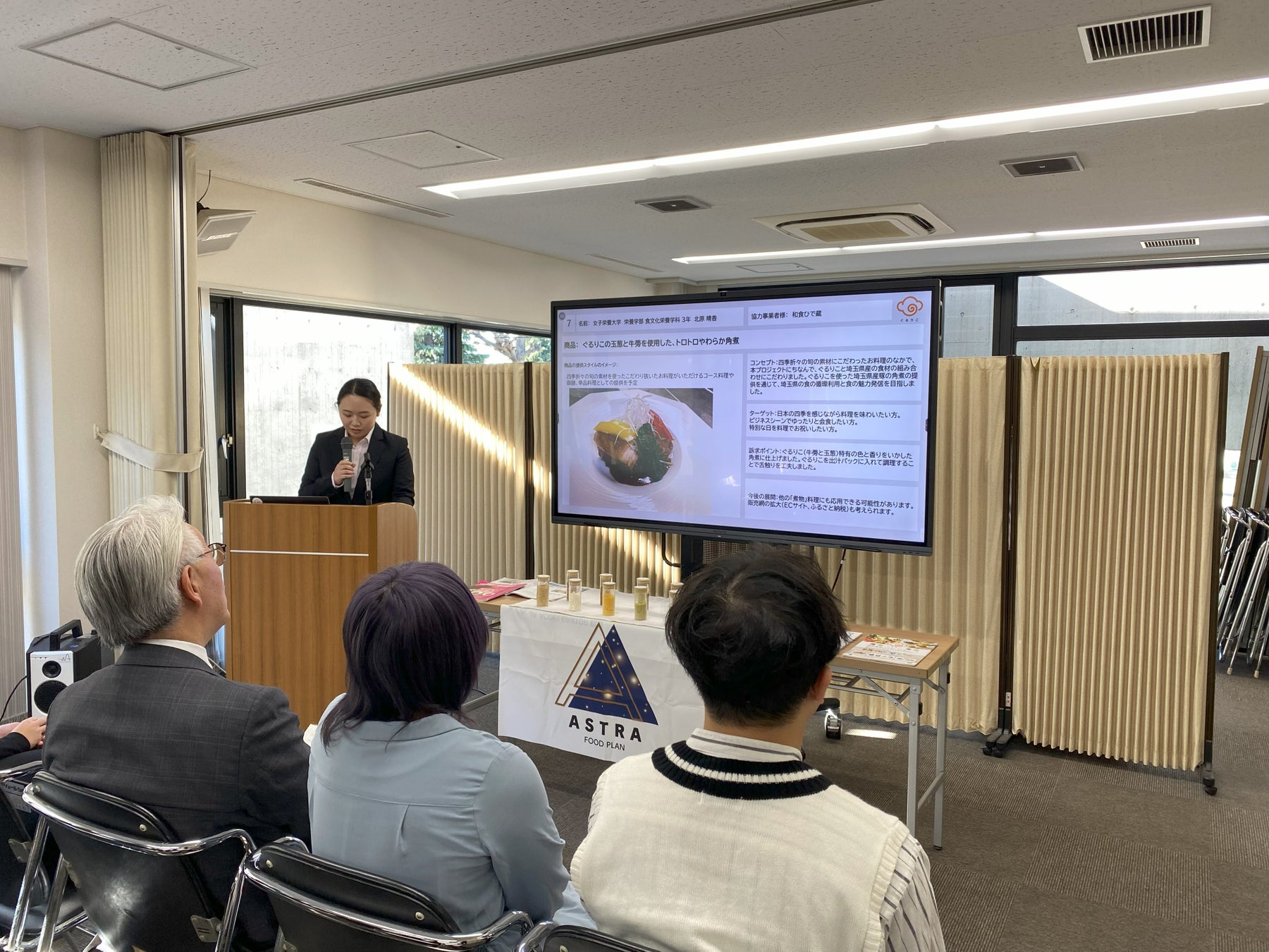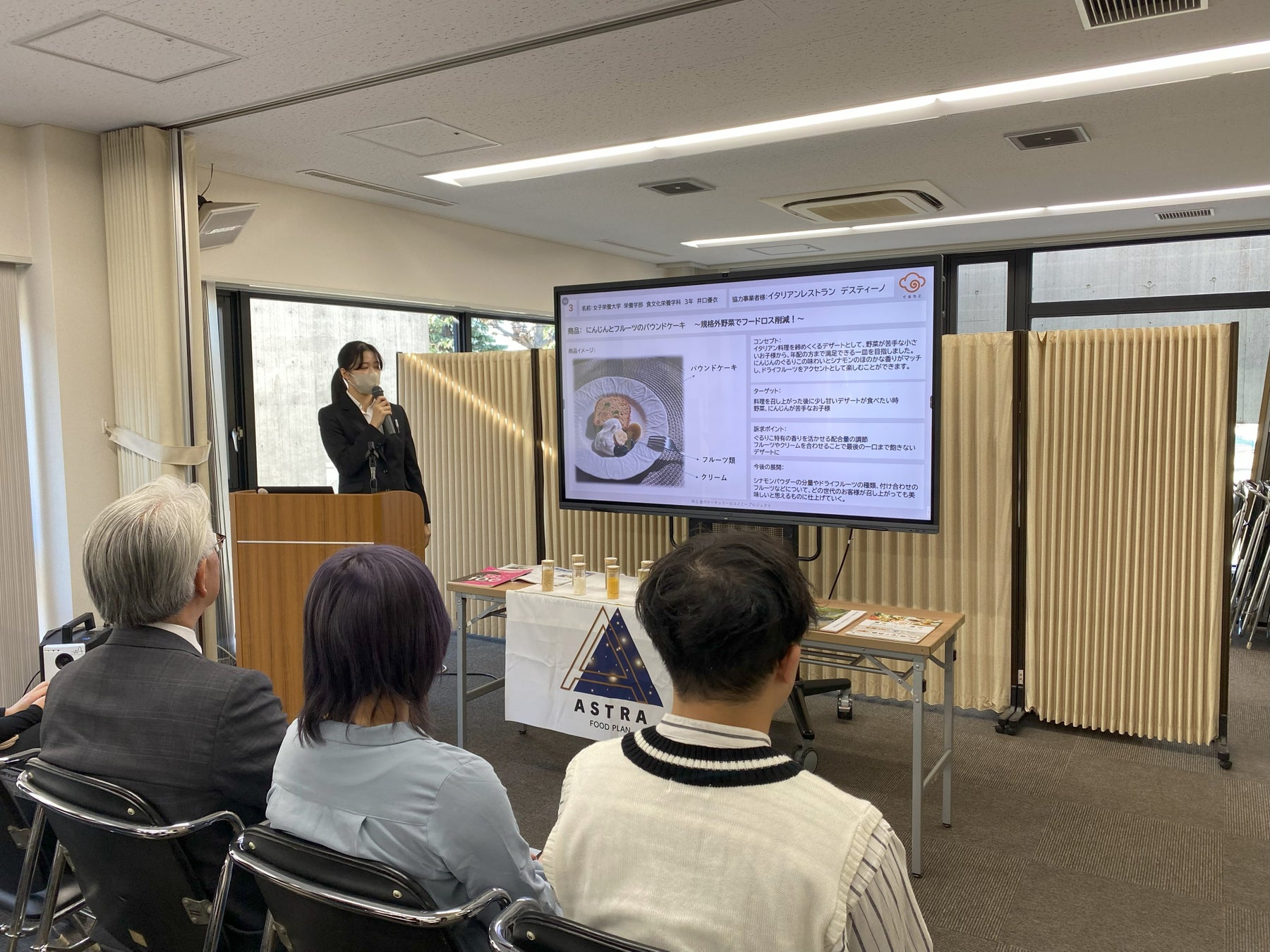 本報告会では、学生が飲食店などと共同で開発中の『ぐるりこⓒ』を使用した新メニューの発表を行いました。また、試食会も実施し、参加者からは「どの試作品もぐるりこの風味が活かされている」「完成度が高い」など高評価でした。各メニューは、今回のフィードバックをもとに最終的な調整を行ったのち、2024年2月に各飲食店などで本格的に販売開始する予定です。
