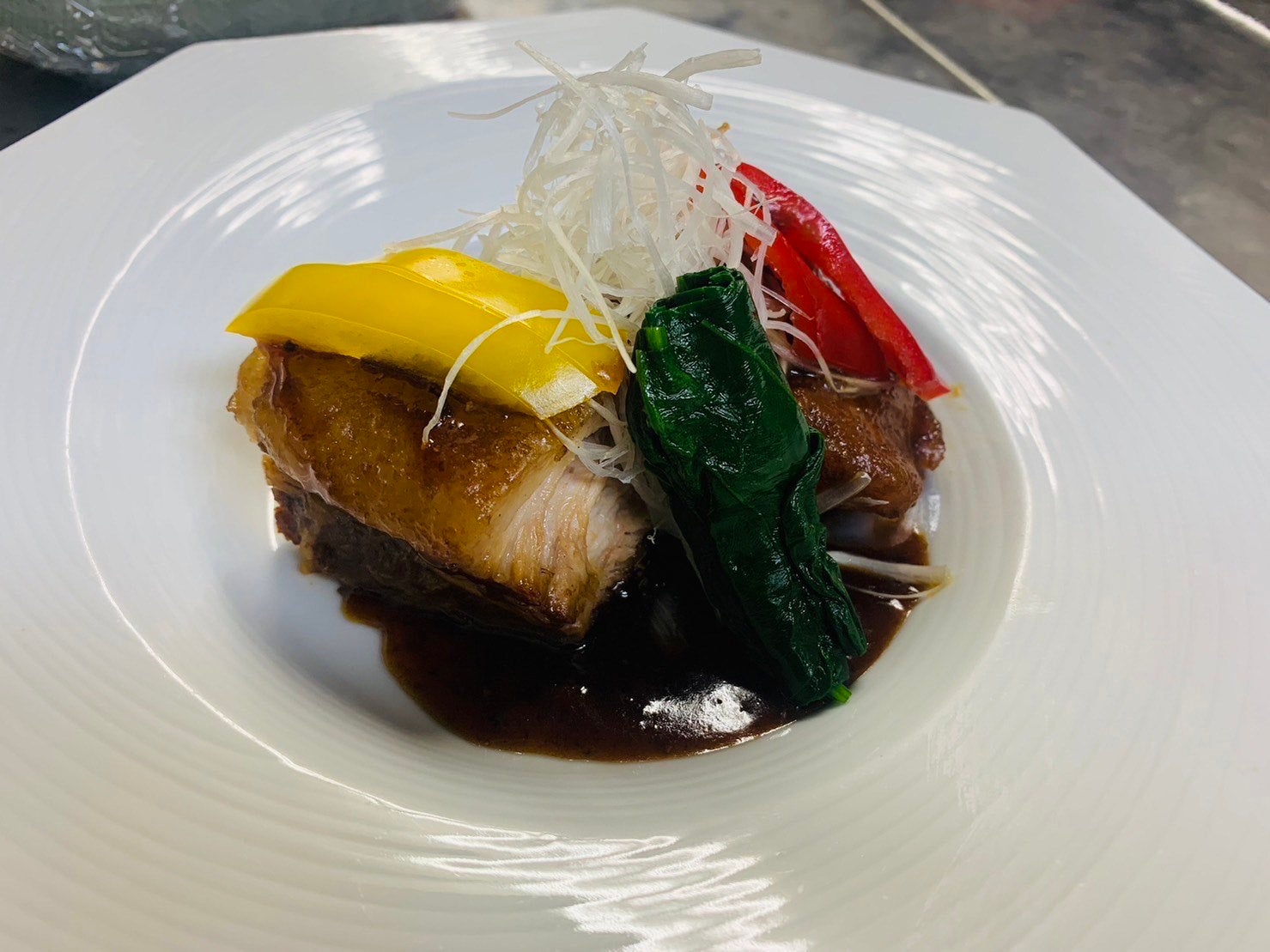 <ぐるりこの玉ねぎとごぼうを使用したとろとろ角煮>