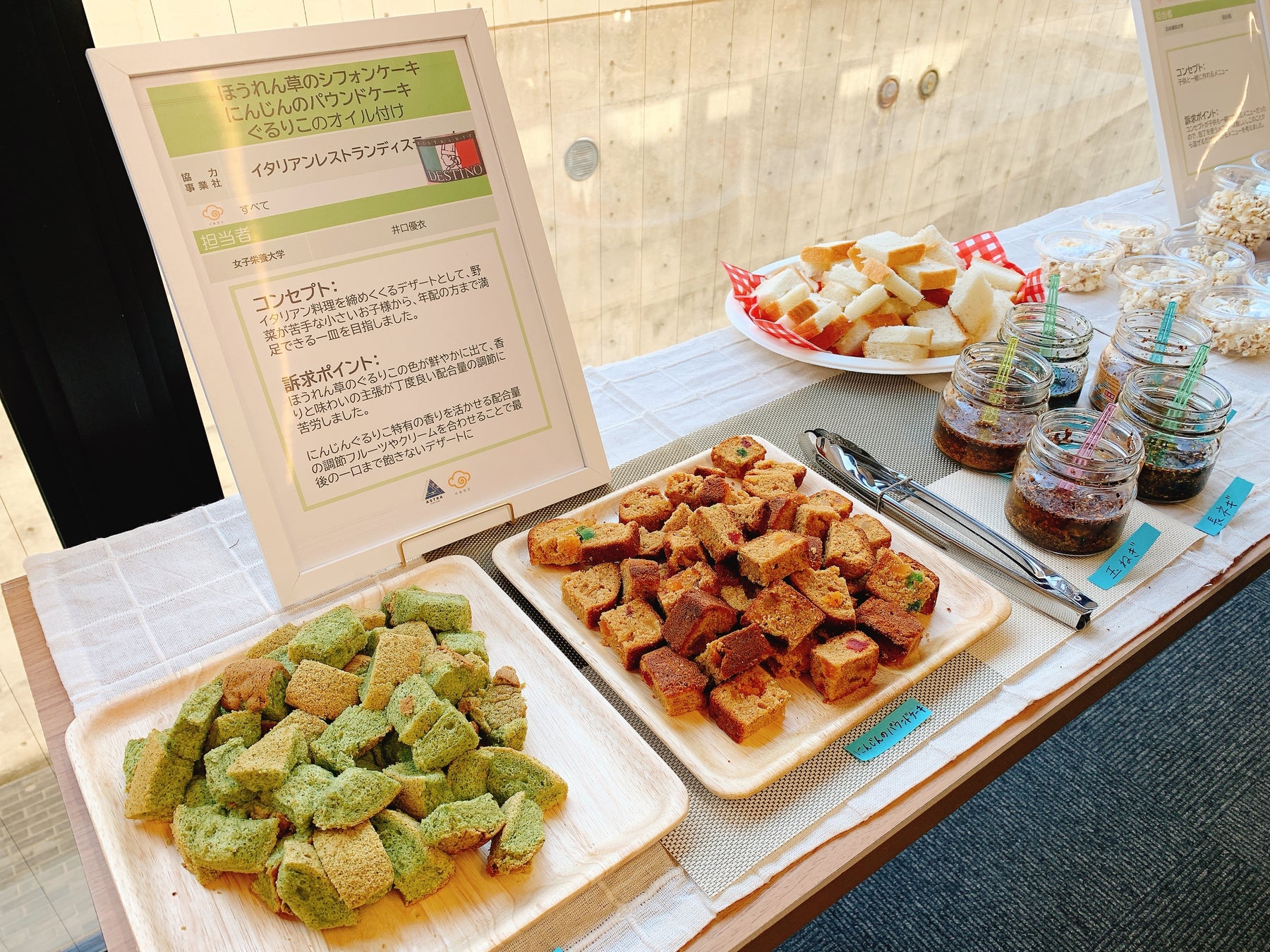 ほうれん草のシフォンケーキ にんじんとフルーツのパウンドケーキ | ほうれん草 にんじん | イタリアンレストラン デスティーノ | 女子栄養大学 |