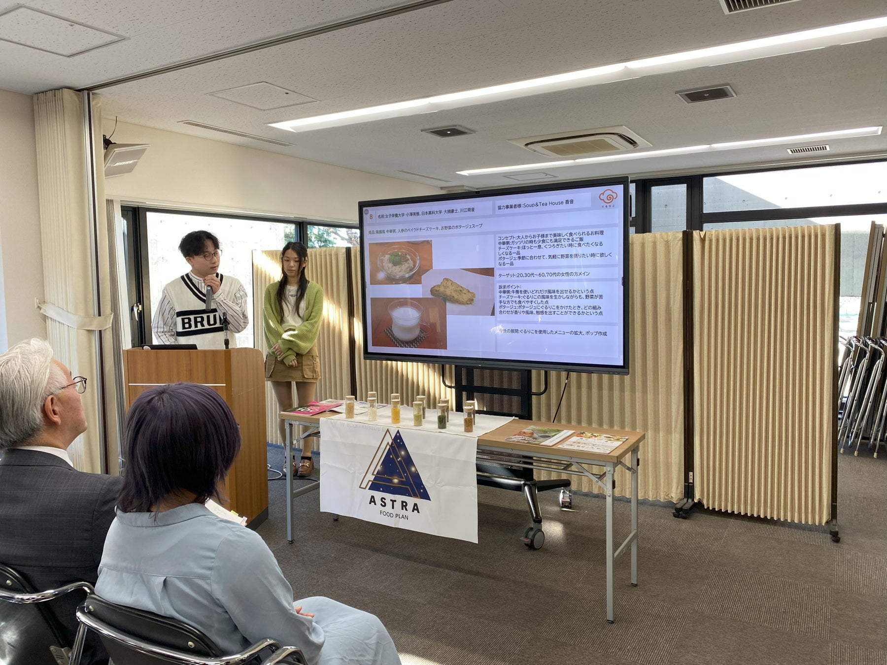 埼玉県内の大学生11名と県内事業者が、地域の規格外農作物を使った新メニューを開発。「試作中間報告会」で初披露。