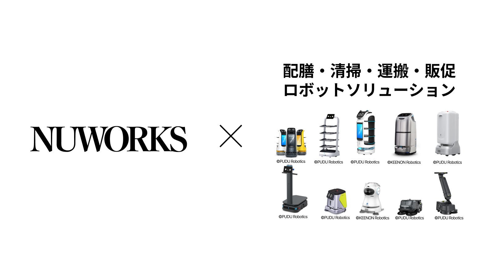 NUWORKS株式会社(本社:東京都豊島区、代表取締役:三浦亮)は、USEN&U-NEXT GROUPの株式会社USEN(本社:東京都品川区、代表取締役社長:貴舩 靖彦、以下、USEN)との協業を通じて、サービスロボットの販売および導入支援サービスを開始いたします。