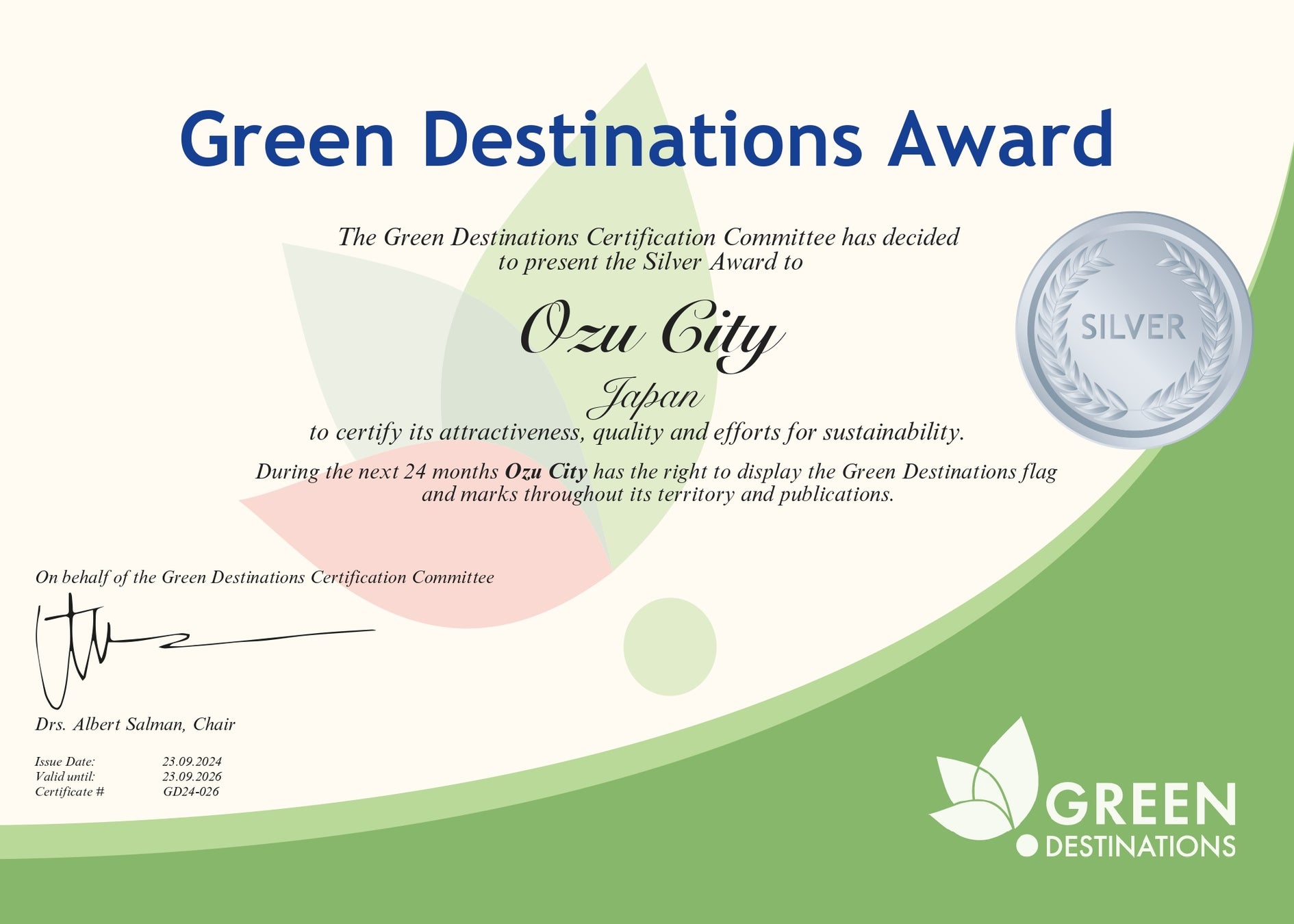 この度、持続可能な観光の国際的な認証機関である「グリーン・デスティネーションズ」(本部:オランダ、以下「GD」)が実施する、地域を表彰するアワードにおいて、香川県小豆島(土庄町、小豆島町)、愛媛県大洲市が四国初のシルバーアワードを受賞しました。