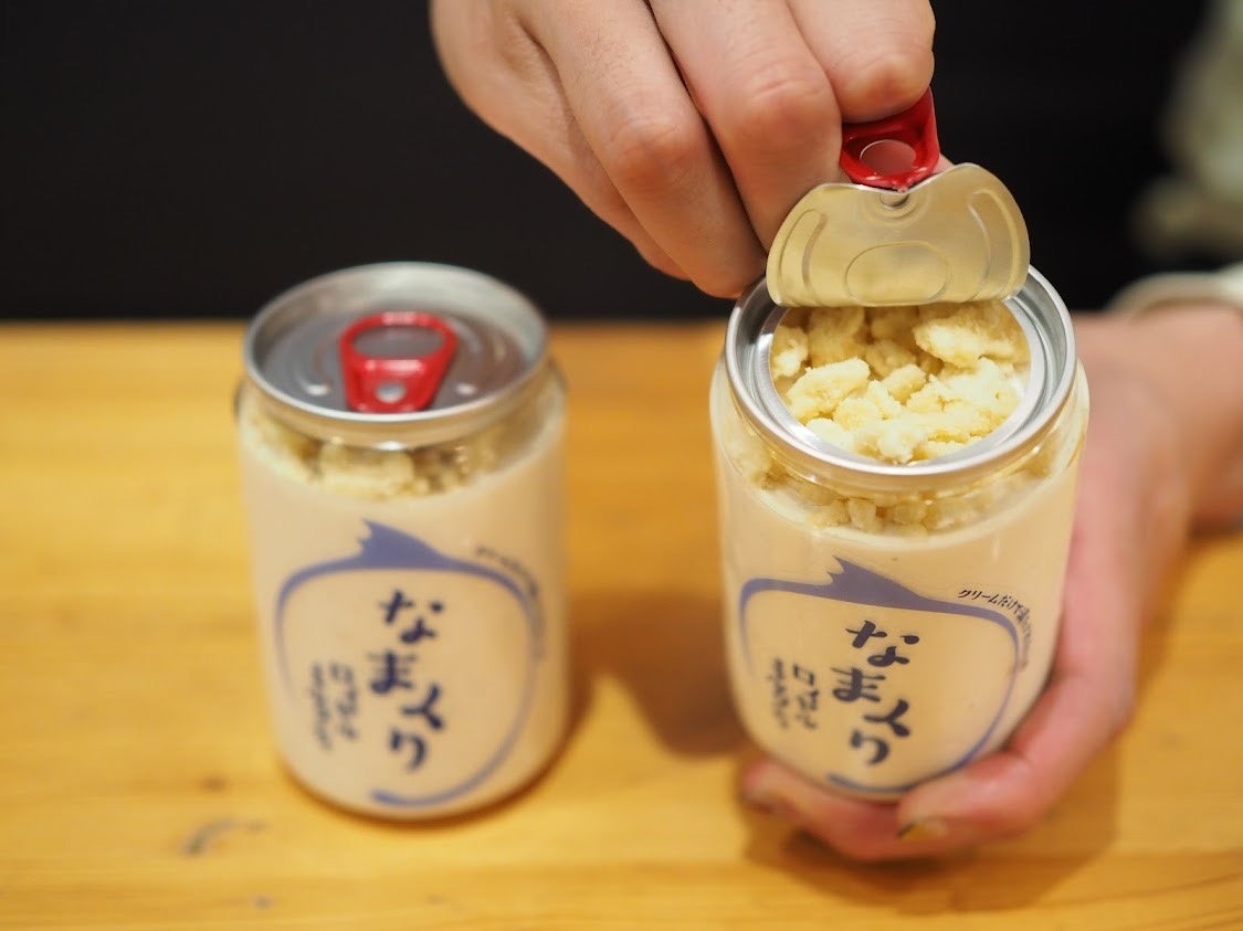 9割が特製クリームでできた奇想天外スイーツ缶『なまくり』。生クリーム好きにはたまらないと既にSHIBUYA109渋谷店等で人気爆発中!昨年4月の発売開始から1年を待たずに累計販売数10万缶を突破。口に入れると舌でとろけて、濃厚なのにぺろりと完食してしまう逸品は、SNSやTVでも好評。味だけではなく、クリームだけで埋め尽くされた真っ白な缶のビジュアルは、SNS戦国時代の若者を中心に大ヒット。近年の流行である自販機型販売という発売形態もブランドの魅力の一つである。