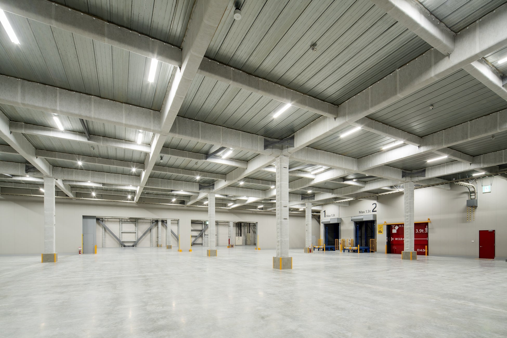 施設面では、一階をブレースのない構造にして空間を確保することで搬入出のオペレーションを効率化するなど、機能性を重視した設計としています。環境面では、CASBEE認証Aランク、BELS認証5☆、ZEB Readyなどの環境認証を取得しています。