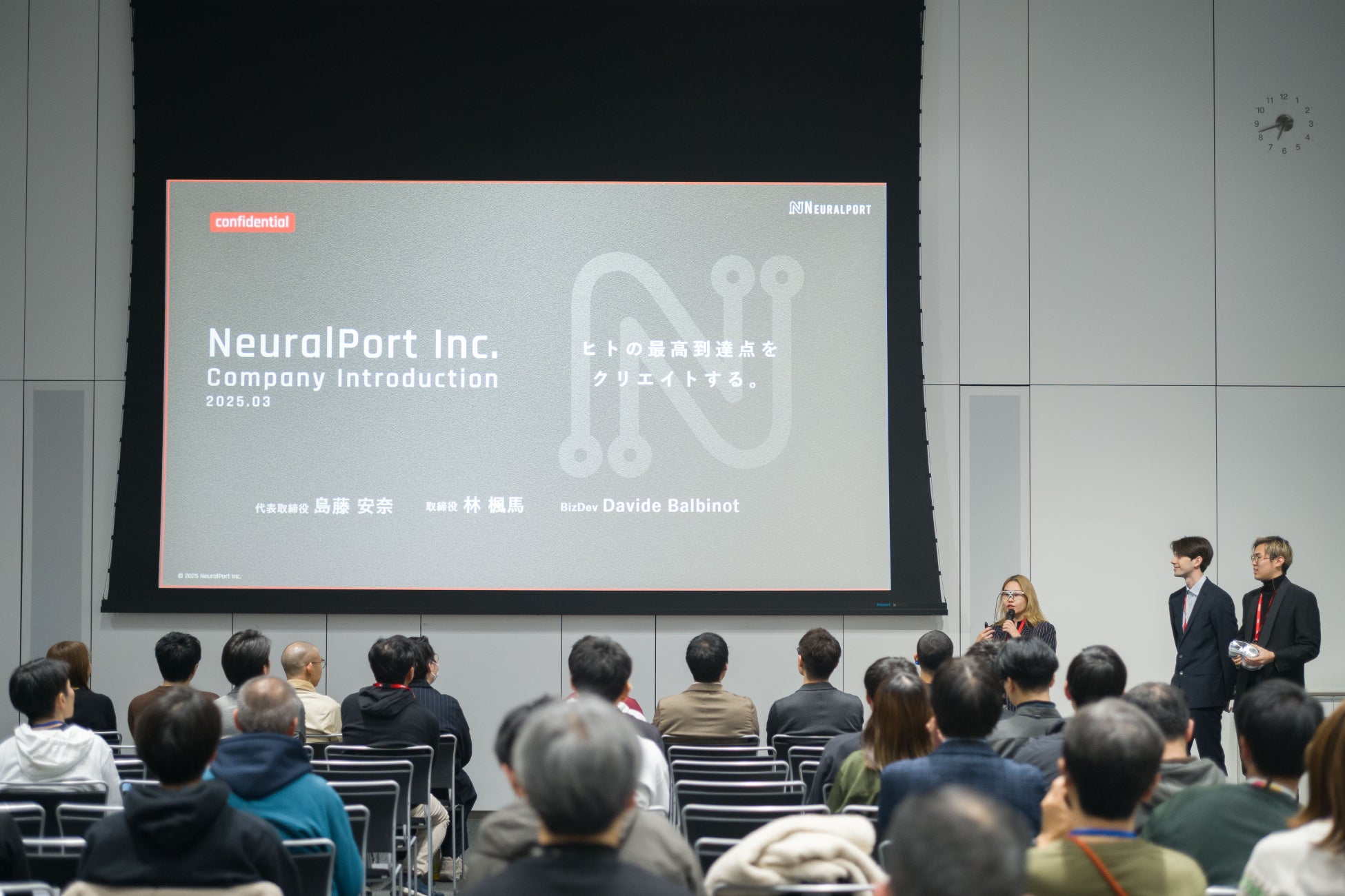 株式会社ニューラルポート(本社:兵庫県芦屋市岩園町1-8 パルティ芦屋Ⅱ 2F、代表取締役:島藤 安奈)は、3月18日にソニーシティ大崎で開催された「Challenger Pitch Vol.1」に参加し、視線計測型ストレスチェックシステムZEN EYE Pro、チェア型ZONEトレーニングポットZONE-Zの可能性についてプレゼンテーションを行いました。