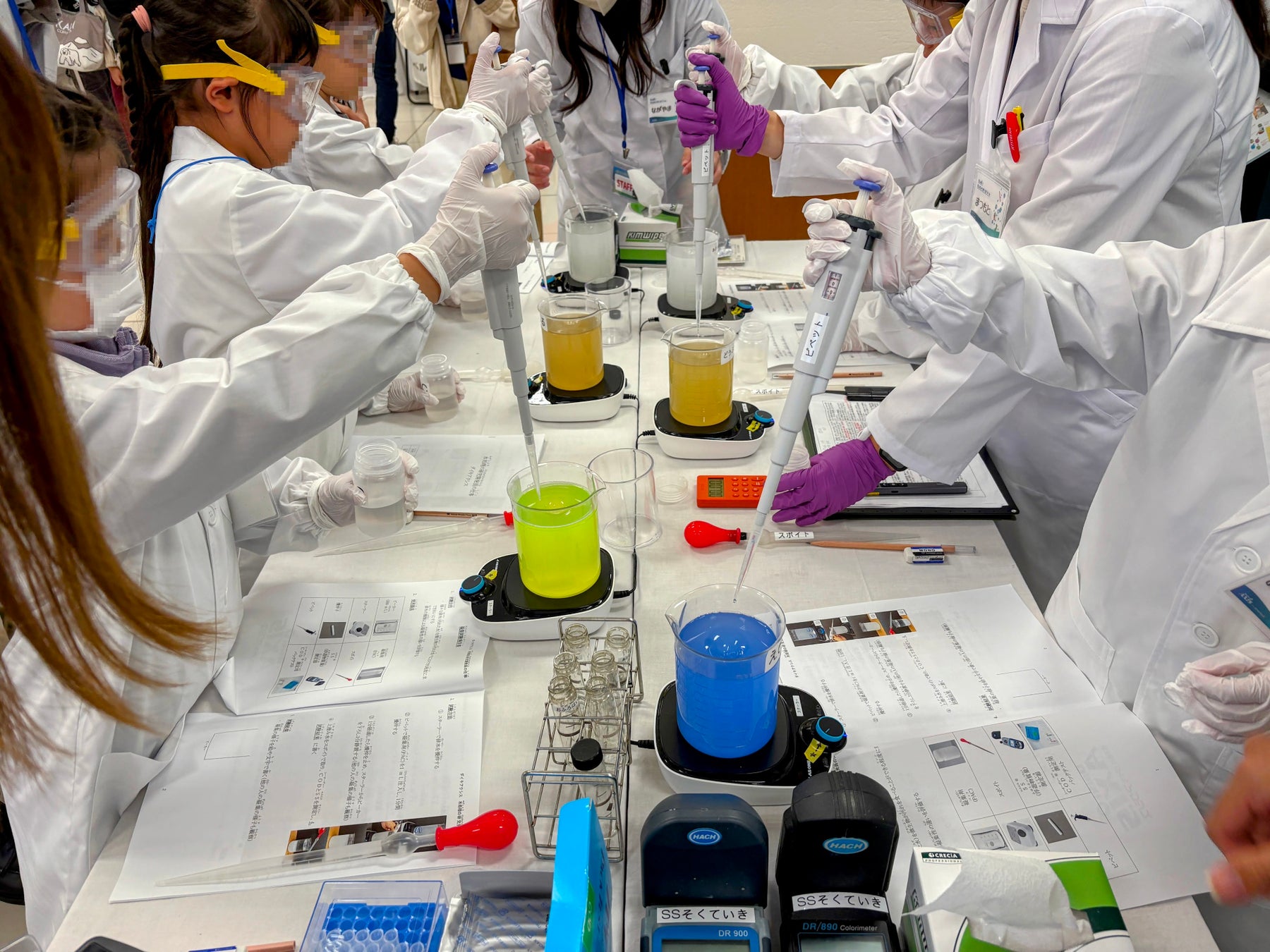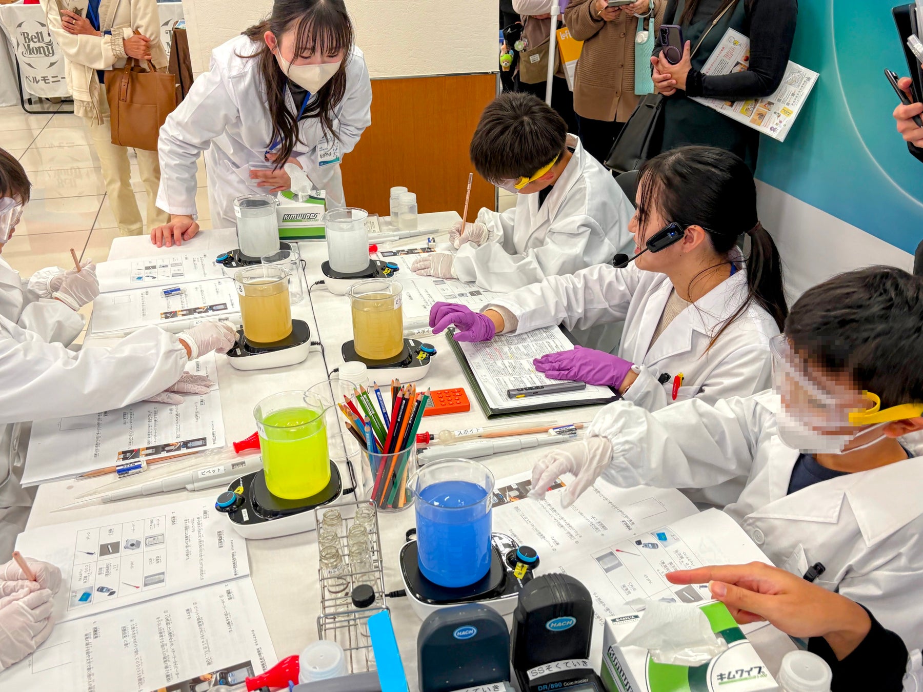 当社提供のプログラムは2日間の開催でしたが、両日とも全ての回が満席となり、小学1年生から中学3年生まで、多くの皆さんに参加いただきました。こども達に水環境を守ることの大切さを理解していただくとともに、「水処理の仕事」についても興味を持っていただけたものと思います。参加していただいた皆さん、ありがとうございました。