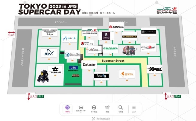 幅広い分野においてコンサルティング/システム開発を手掛ける日本コムシンク株式会社(所在地:大阪市西区江戸堀/東京都千代田区霞が関、代表取締役:山里真元、以下 日本コムシンク)は、ジャパンモビリティショー2023にて、一般社団法人 日本スーパーカー協会(所在地:東京都港区白金、代表理事:須山 泰宏、以下 日本スーパーカー協会)が手掛けた、「TOKYO SUPERCAR DAY 2023 in JMS」ブース内で、「ブースMAP」を活用し、来場者の導線確保から、同ブース内協賛各社ショールームへの来店やECサイトへのアクセスを促進するまでのデジタル送客支援を行いました。