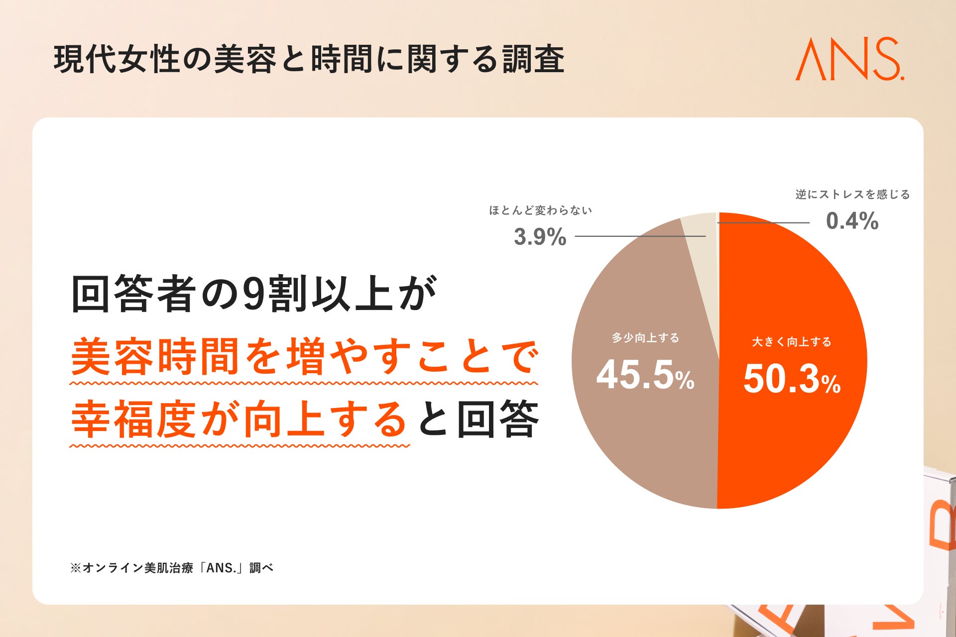 このたび『ANS.』では、多忙な日々を過ごす現代女性がどのように美容(スキンケアなど)に向き合っているのか、美容への時間の使い方、美容と幸福度の関連性などをテーマに本調査を実施いたしました。
