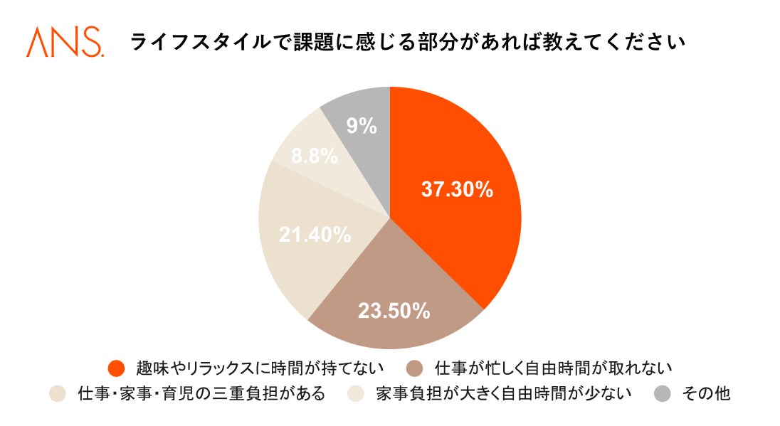 ライフスタイルで課題に感じることは、1位:趣味やリラックスに時間が持てない(37.3%)