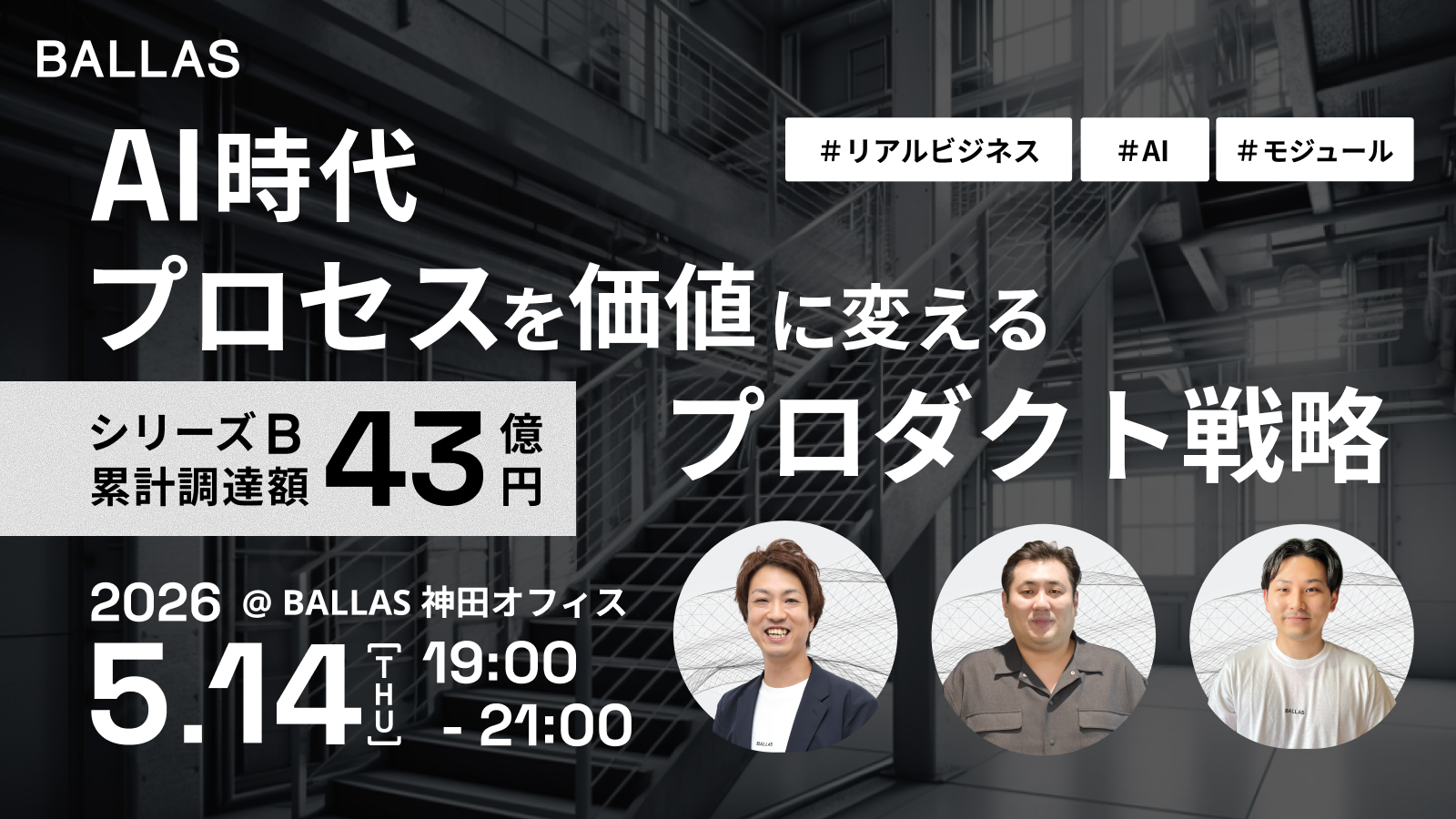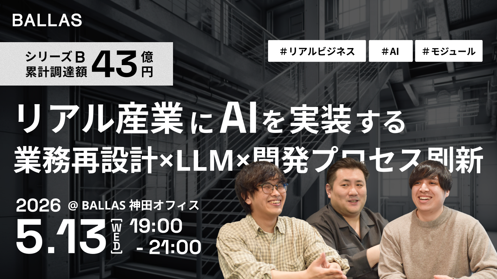 また、本調達を機にBALLASのプロダクト開発の取り組みをご紹介するイベントを開催いたします。本イベントでは、リアル×テックのアプローチにより、リアル産業にAIをはじめとしたテクノロジーをどのように実装しているか、質疑応答を交えながら詳しく説明いたします。