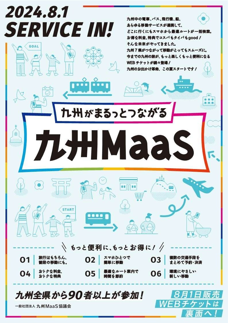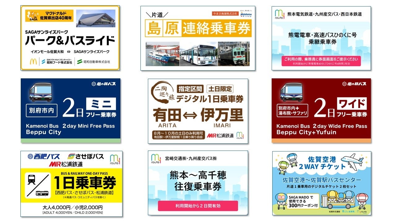九州MaaSが8月1日からサービスインするにあたり、新たに15種類のデジタルチケットを販売開始いたします。すでに発売している九州7県約100種のチケットの販売、観光・おでかけ情報、マルチモーダル・ルート検索の提供を通して、九州MaaSの推進に貢献してまいります。