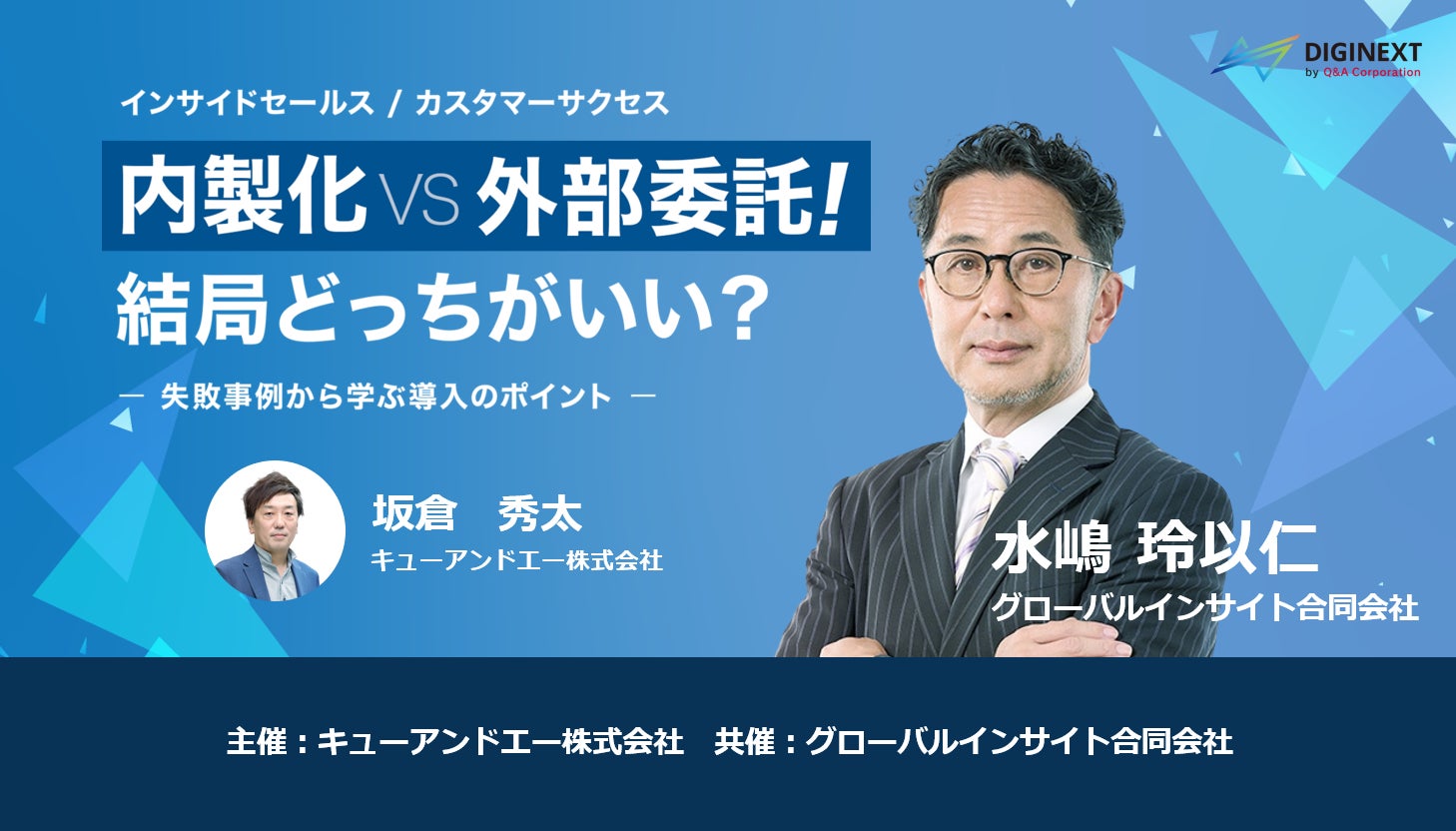 キューアンドエー株式会社(東京本社:東京都渋谷区)は、「インサイドセールス/カスタマーサクセス 内製化vs外部委託 ~失敗事例から学ぶ導入のポイント~」をテーマに2023年10月25日(水)にウェビナーを開催しました。ご好評につき、本日1月24日から1月31日まで、限定でアーカイブ配信をいたします。