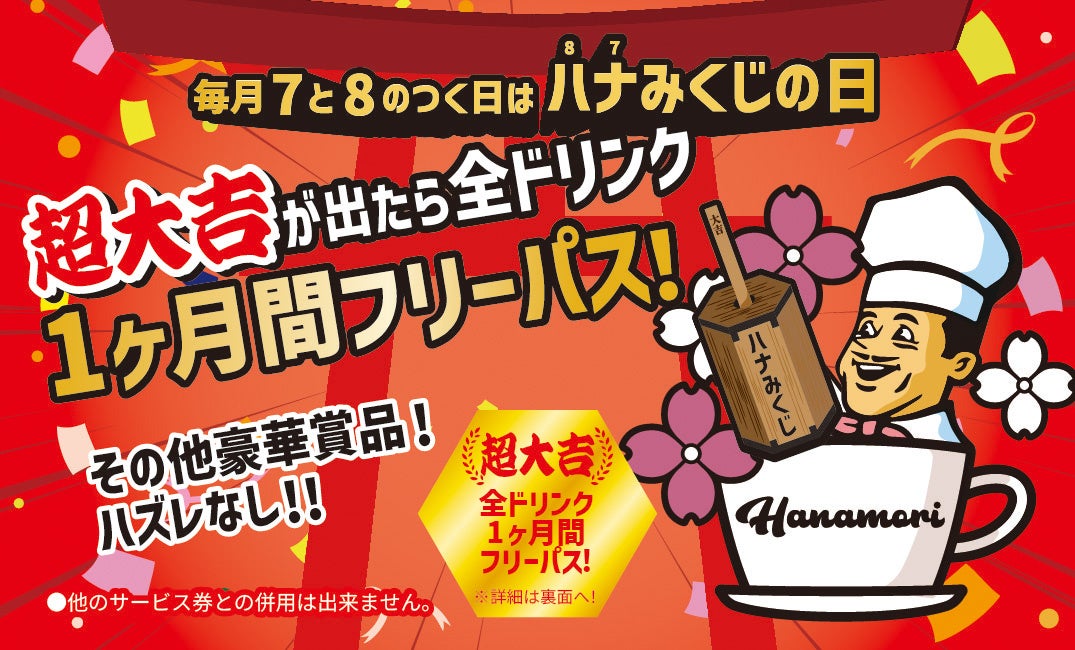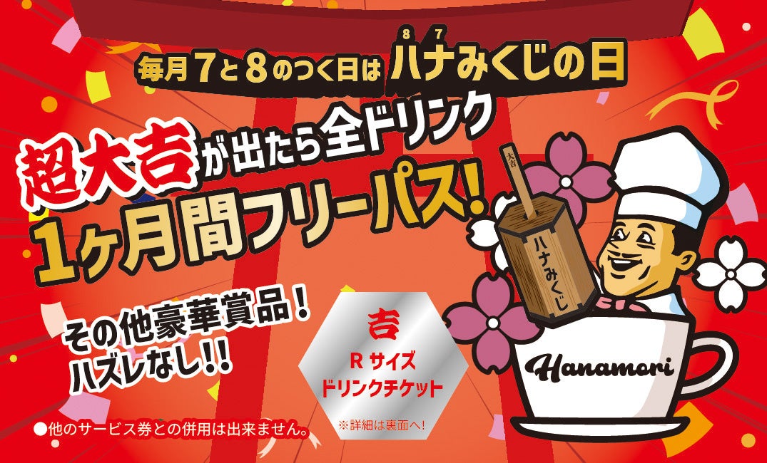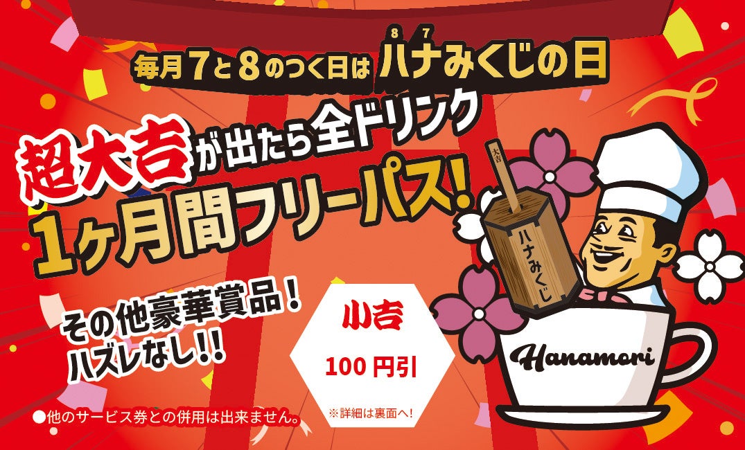 株式会社sommet farm(本社:東京都千代⽥区飯⽥橋1丁⽬3番8号、代表取締役:⼤塚 ⿓之介)は、cafeHanamori(カフェハナモリ) 千駄木店(住所:東京都文京区千駄木3丁目40−17 カサベルデ1F、TEL:03-5834-2929)にて毎⽉7と8のつく⽇はハナみくじの⽇をリリースします。