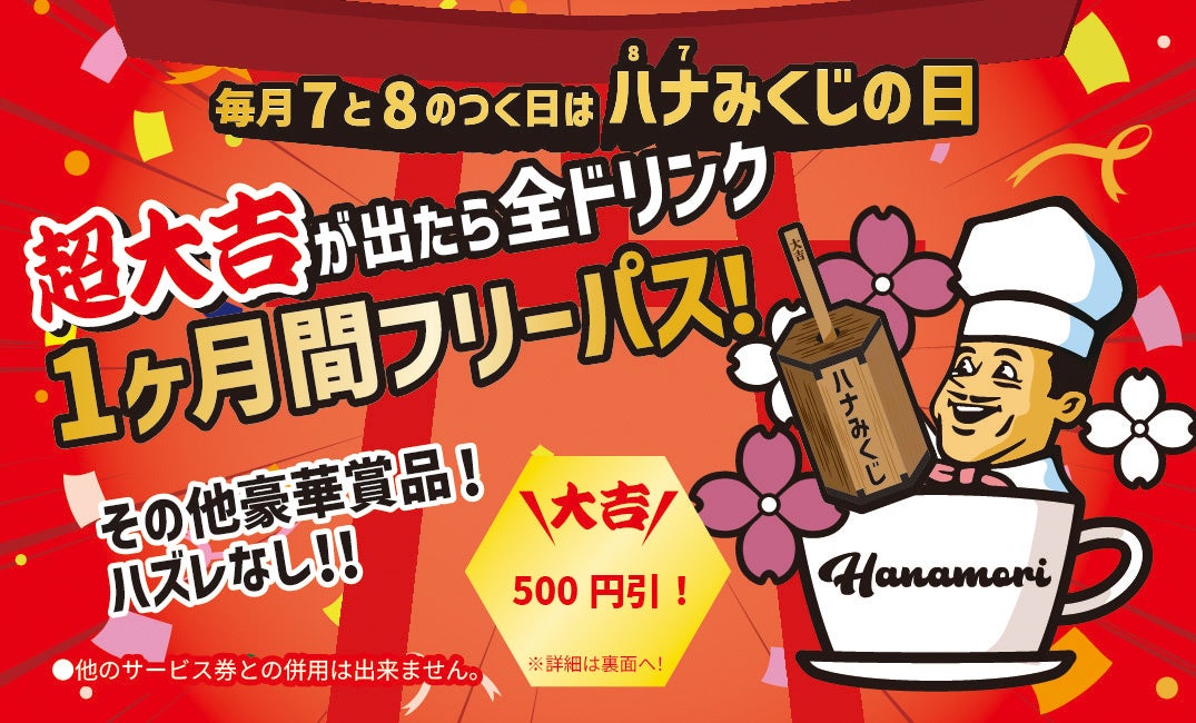 [cafe Hanamori 千駄木店]毎⽉7と8のつく⽇はハナみくじの⽇をリリースします。