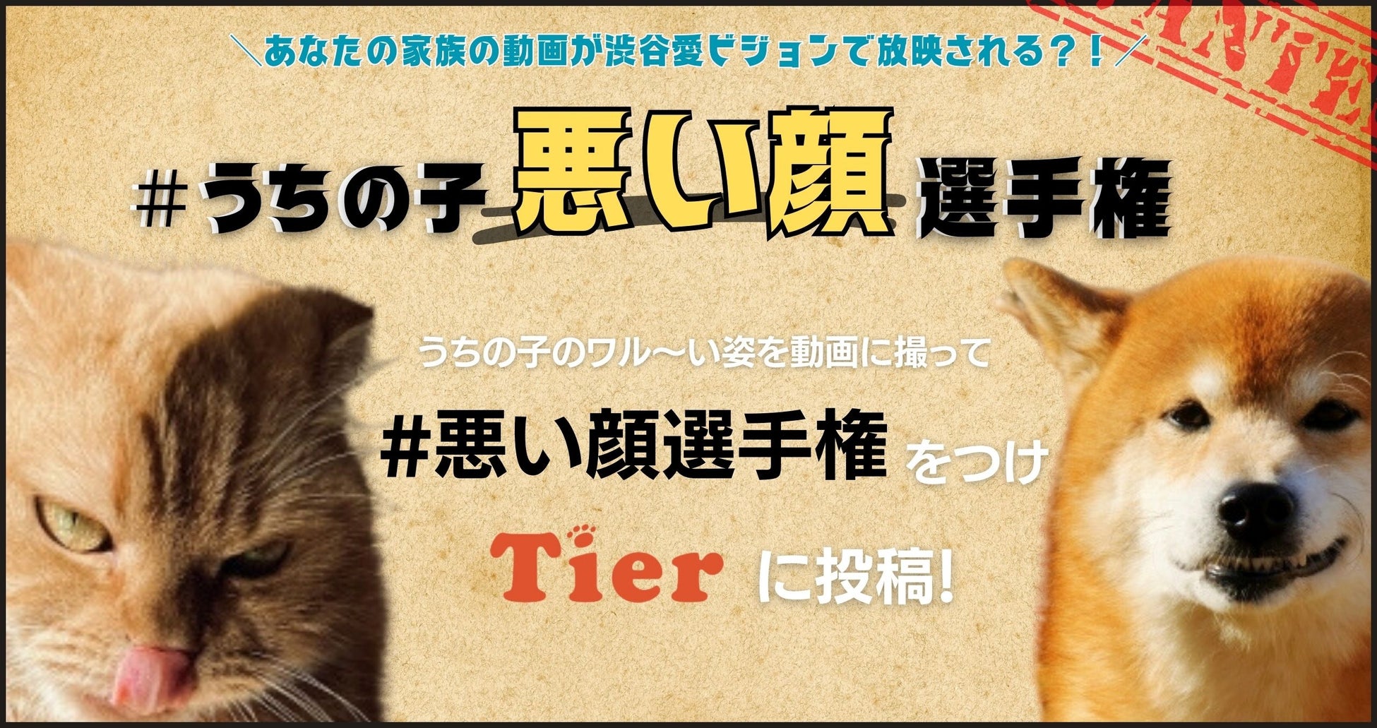 あなたの家族の動画が大型ビジョンで流れるチャンス!Tierで「うちの子悪い顔選手権」を開催!