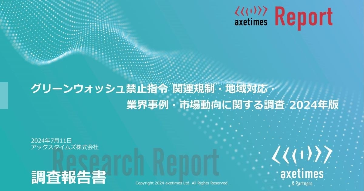 ビジネス解像度を高めるリサーチ情報サービスを展開するアックスタイムズ株式会社(所在地:大阪府大阪市中央区、代表取締役:橋本規宏)は、欧州・米国・日本を中心としたグリーンウォッシュ規制関連施策と業界・企業・市場への影響について体系的に分析した調査報告書「グリーンウォッシュ禁止指令 地域規制・業界事例・市場動向に関する調査 2024年版」を、2024年7月11日にリリースしたことをお知らせします。