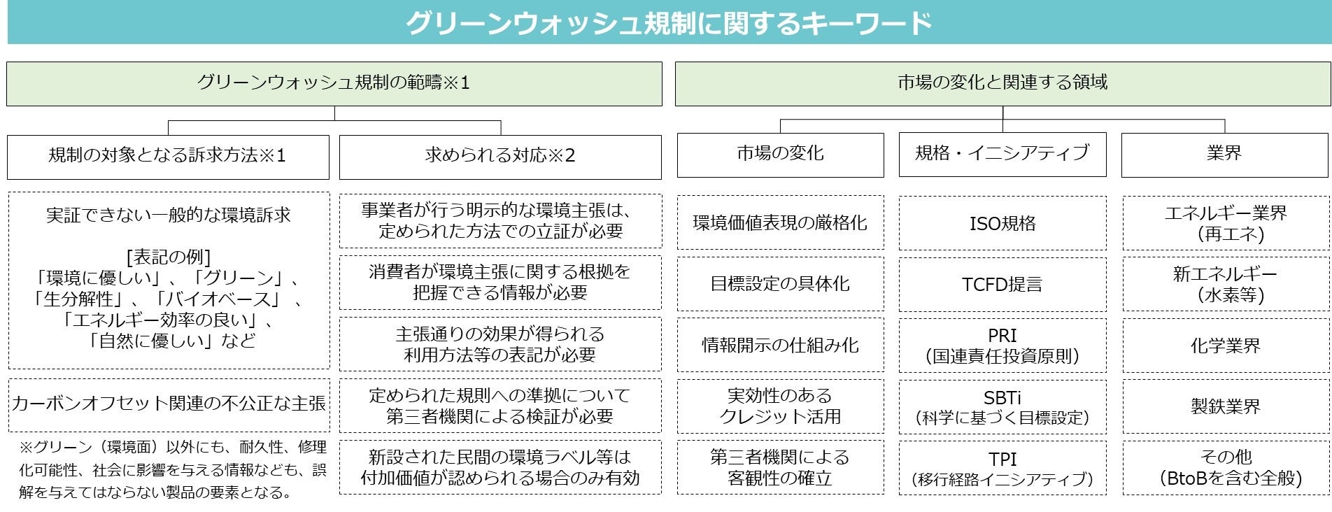 調査対象|グリーンウォッシュ禁止指令に関連する規制・業界事例・市場動向など