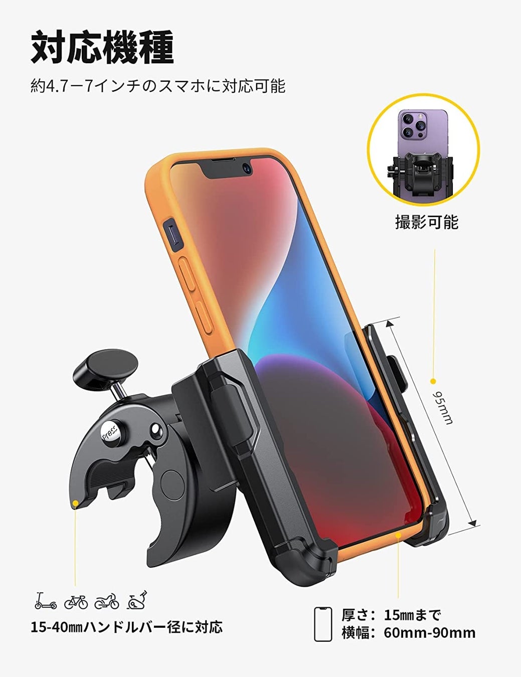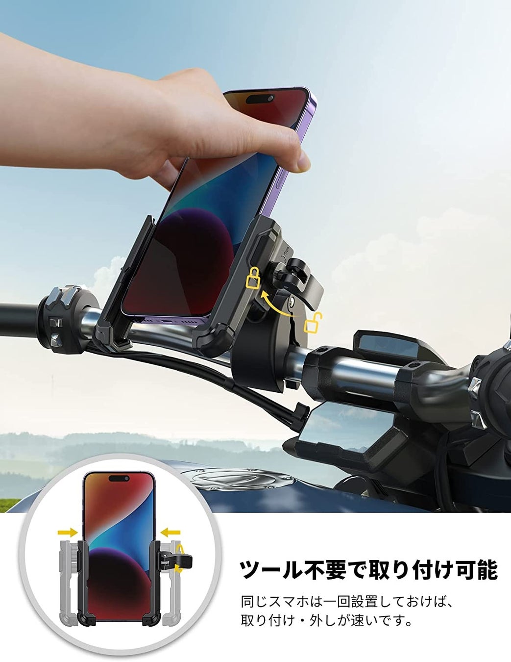 Lamicallの自転車用スマホホルダーは、クイックとスマホの着脱可能です。工具不要かつハンドルバーで簡単に取り付けができます。360°回転式だから地図アプリも見やすく、太陽の昇降時間によって常に見やすい角度に調整可能です。ナビや時間を確認したり、走行距離やケイデンスをチェックしたり。シンプルな見た目からは想像できないような安定性を持つLamicallの自転車用スマホホルダーで、便利で快適な自転車ライフをお楽しみください。