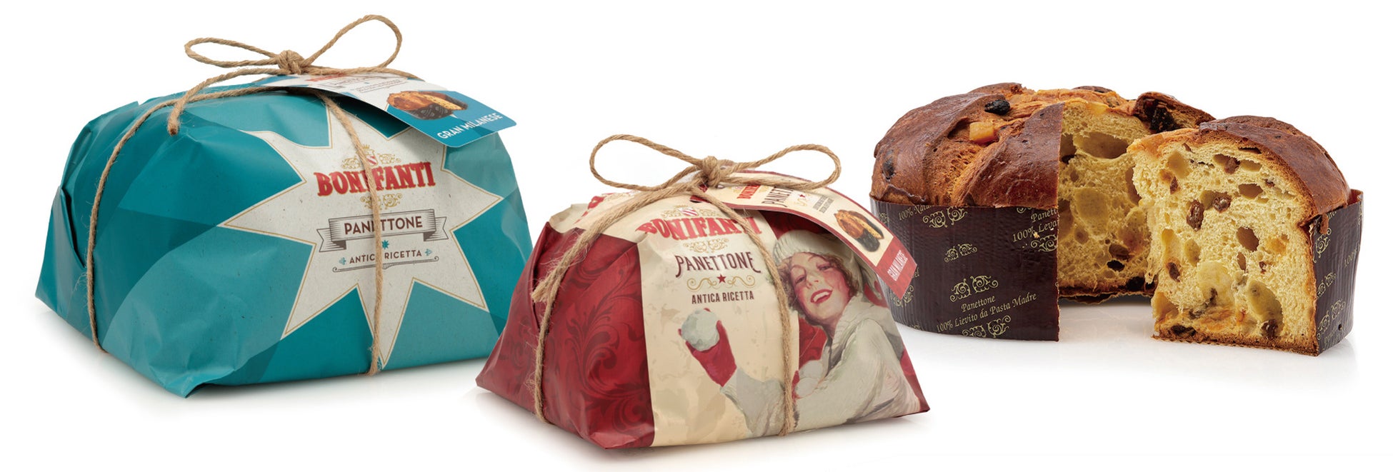 1932年、天然酵母を使ったベーカリーとしてピエモンテ州トリノのヴィッラフランカで創業。特有の甘く芳醇な香りと、しっとりと柔らかな生地はボニファンティならでは。バター、ヘーゼルナッツ、チョコレート、放し飼いの鶏の卵など、厳選された原材料に、南イタリア産のシトロンピール、トルコ産のレーズン、マダガスカル産のバニラビーンズなどを加えて作られる上質な味わいをお楽しみください。