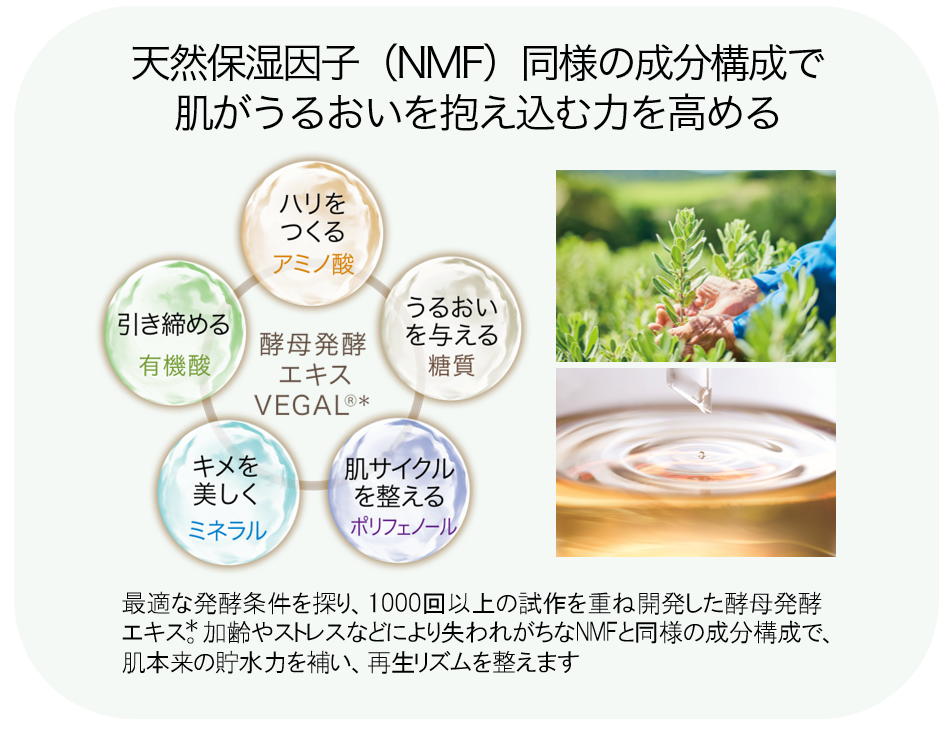 美肌成分がバランス良く調和した、酵母発酵エキスVEGAL[ベガル®]*