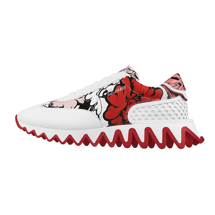 Shun SudoのButton Flowerとクリスチャン ルブタンのシグネチャーロゴのポップアート的な並置はこのカプセルコレクションに新鮮なトーンを与え、遊び心のあるMISS JANEパンプス、明るく快活なイメージのレザーグッズとアクセサリーの多くにも見受けられます。Shun Sudoのシグネチャーフラワーで飾られたADOLONスニーカー、アイキャッチなルビレッドが精細に内側にまで刻み込まれ、アイコニックなレザーソールを強調します。