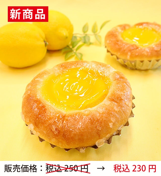 商品特徴:色鮮やかなレモンカードが食欲をそそる♪レモンの爽やかな香りとフレッシュな酸味で、爽快な気分になれそうなスイーツパンです。