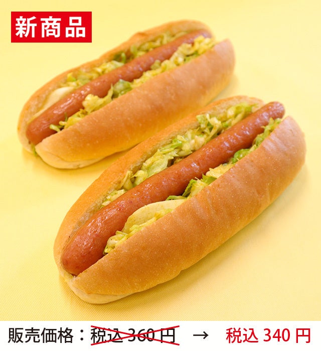 商品特徴:カレー粉で炒めたスパイシーなキャベツが食欲をそそる!長~いあらびきポークウィンナーを挟んだ食べ応えのあるホットドッグ!