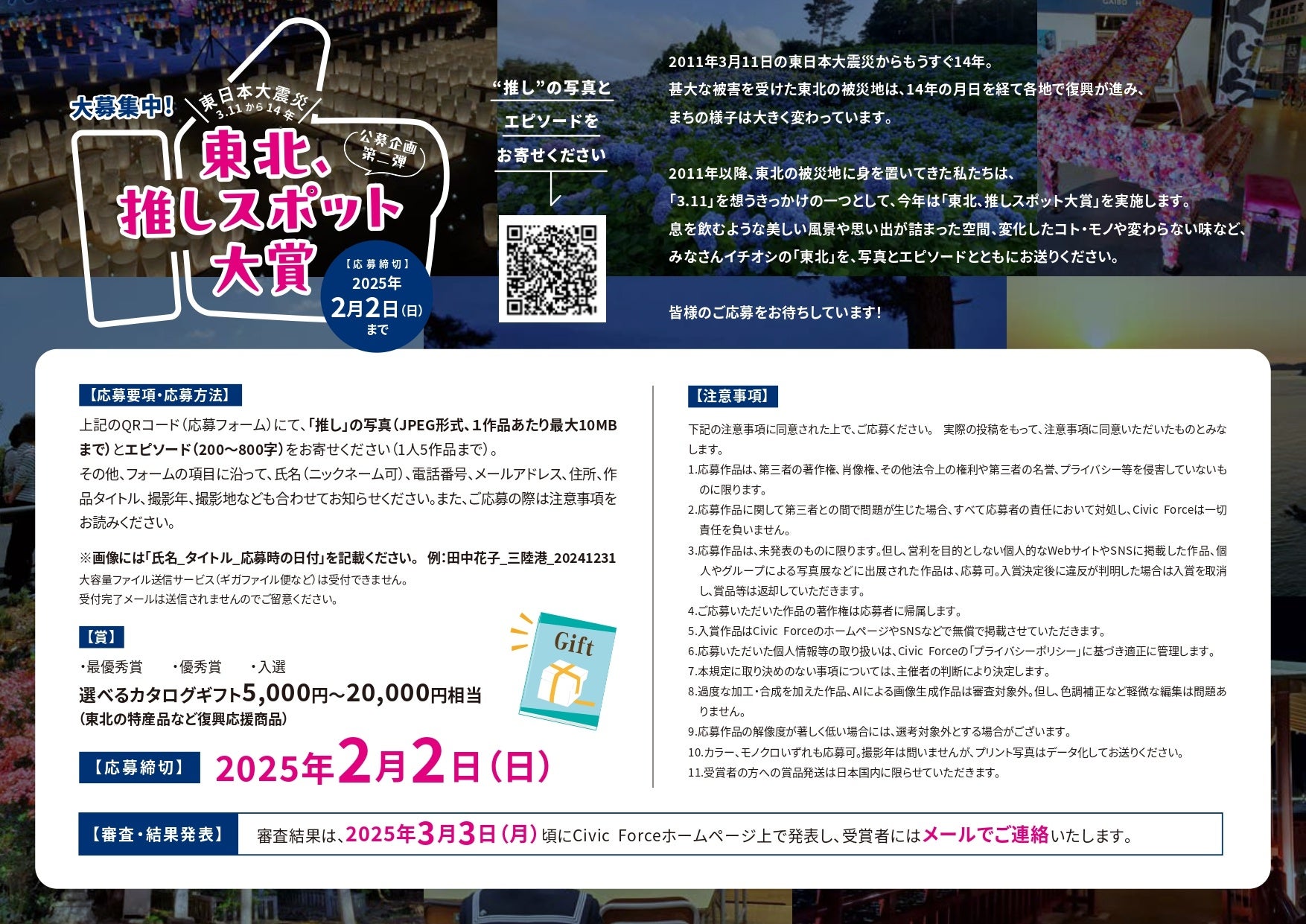 【東日本大震災 3.11 から14年】公募企画第2弾「東北、推しスポット大賞」12/20〜募集開始!