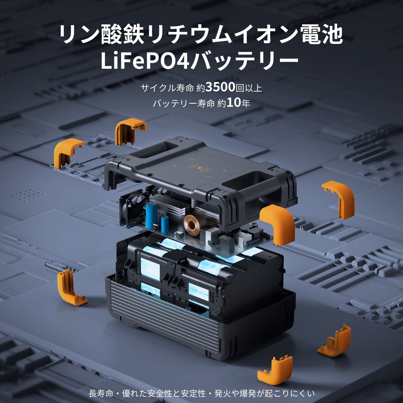 充放電サイクル回数は3,500回以上になります、3,500回後も初期容量の80%以上を維持できます。