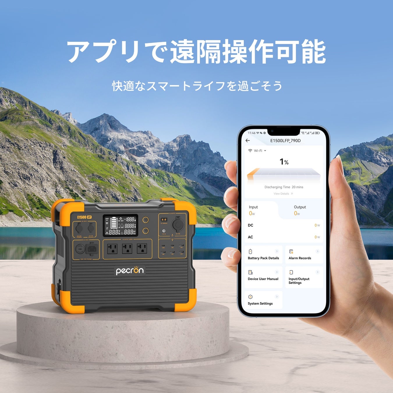 PECRON E1500LFPは、PECRON専用アプリをスマホ等にインストールすることで、遠隔から操作や状態確認を行うことができます。