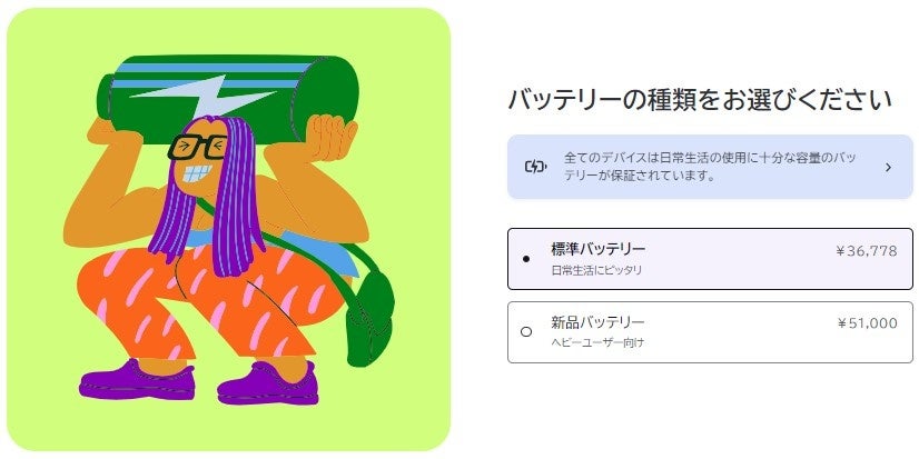 通常のバッテリー容量保証に加えて、最大容量100%を保証する「新品バッテリーオプション」が選択可能に