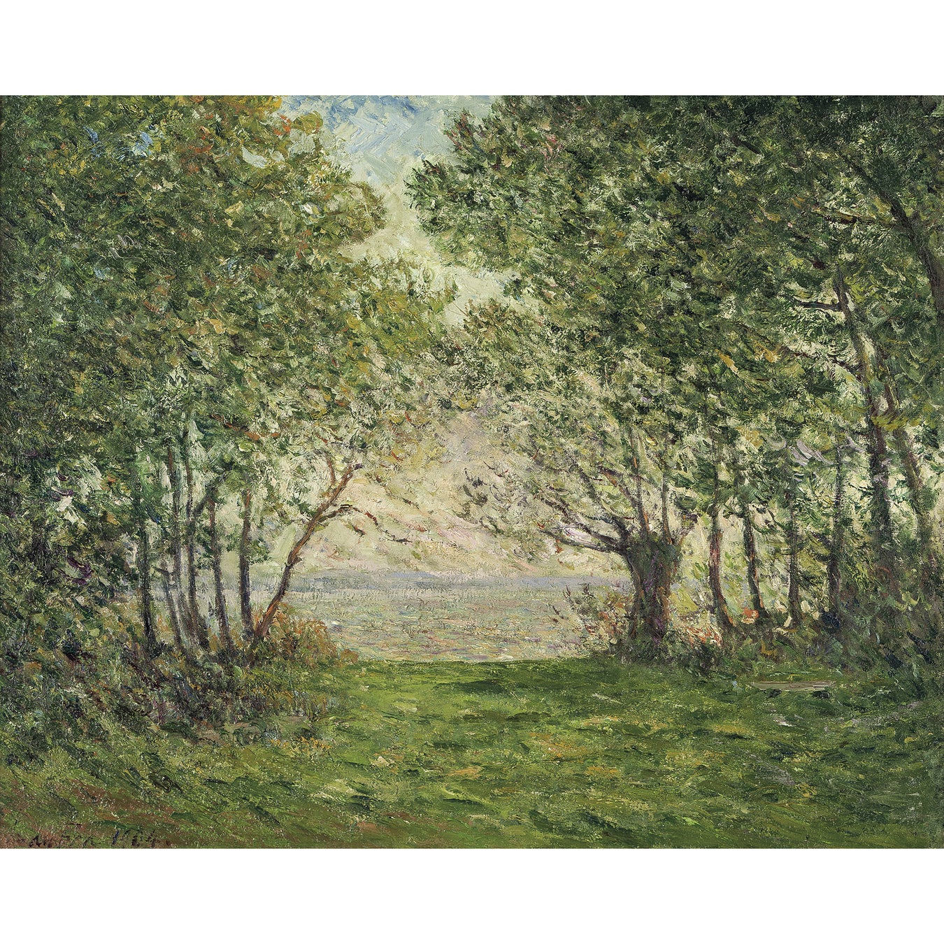 ピエール=オーギュスト・ルノワールの晩年の傑作「泉をくむ裸婦」は、画家が長い画業の果てに到達した《絵画による生命賛歌》の極致と呼べる名品です。陽光に輝く草叢と湧水の瑞々しい描写は、湿潤な空気や若草の香りまで感じさせるかのようで、裸婦の肌は温もりと生命力に満ちています。本作は、日本の洋画界に影響を与えた「泉による女」(大原美術館蔵)と主題・構図が近似しており、私たちの想起する《ルノワールの名品》の典型といえましょう。磁器絵付けの修行から始まった彼の画業は、前衛的な印象派の色彩表現と古典絵画の造形美を融合させ、晩年には裸婦という伝統的主題に収斂しました。曲線を多用した柔らかな筆致と、光を放つような色彩が画面全体に躍動感を与え、描かれたモチーフの全てに生命の力強さが謳われるかのようです。ルノワールの孤高の画境を表す本作は、次代の芸術家たちを奮い立たせた彼の芸術の精髄を堪能できる逸品です。