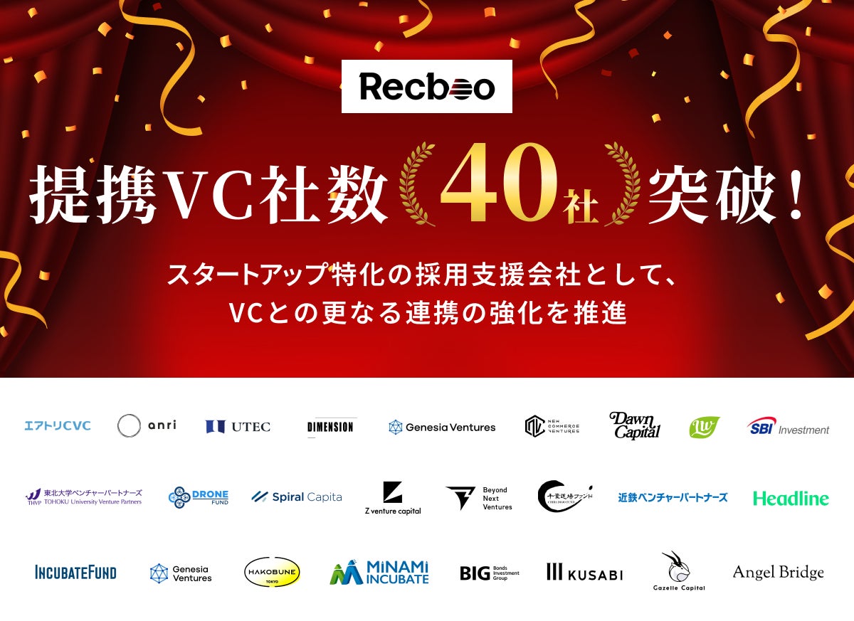 【Recboo】VC提携40社突破!スタートアップの中途採用支援体制を強化。スタートアップ特化の人事コミュニティの事前募集も開始。
