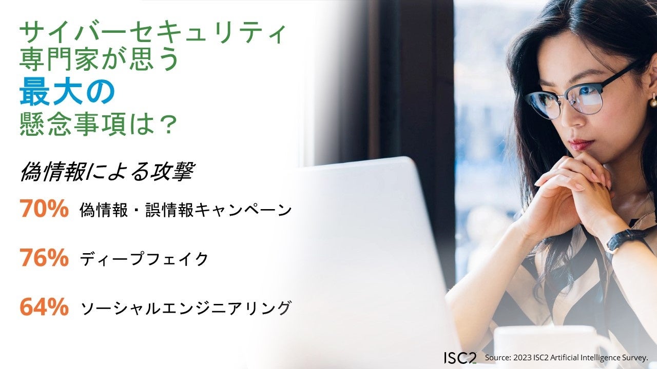 AI技術によって台頭することを懸念している脅威の上位3つには、「ディープフェイク(76%)」、「偽情報・誤情報キャンペーン(70%)」、「ソーシャルエンジニアリング(64%)」が挙がりました