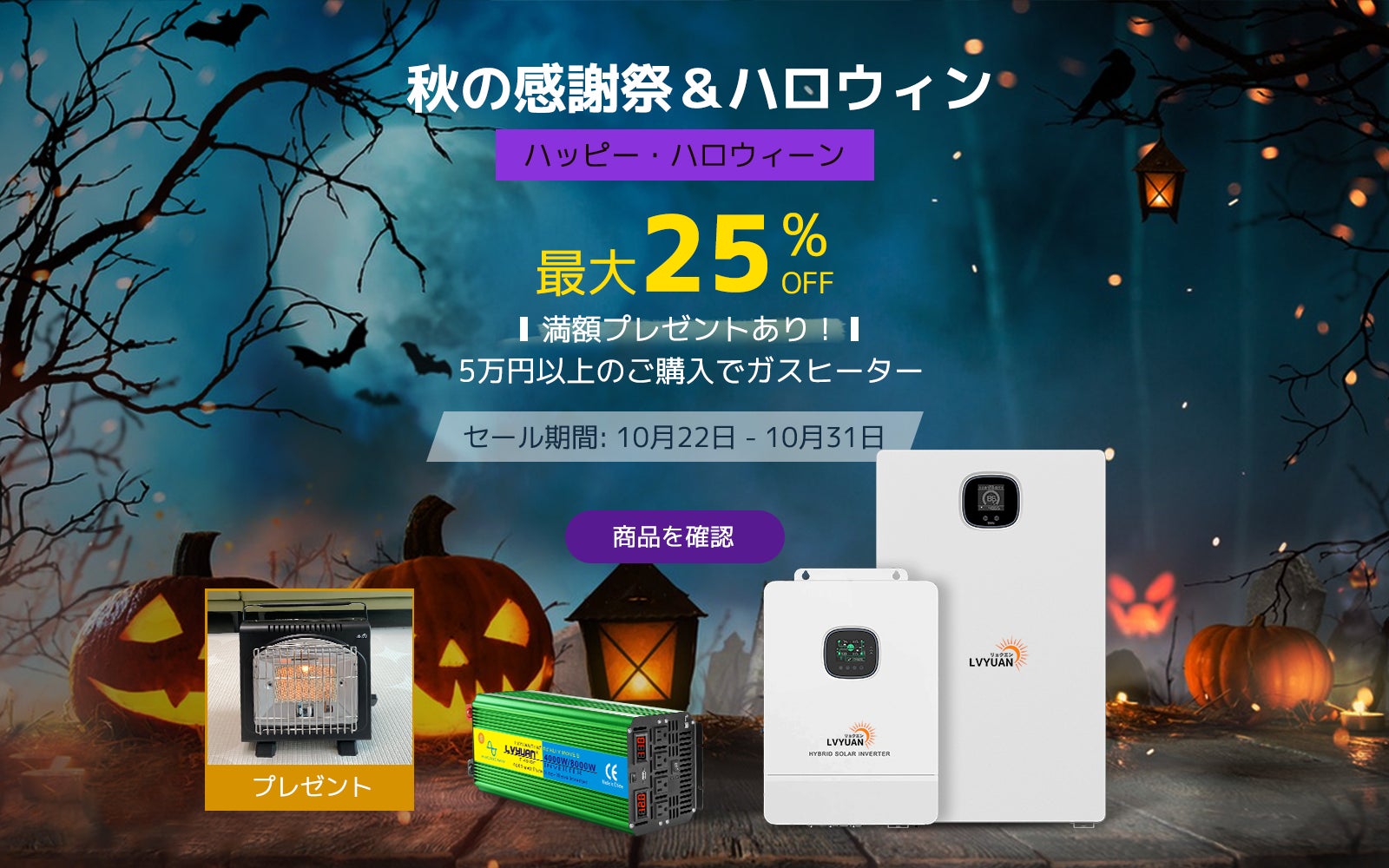 我々は皆さまへの感謝の気持ちを込めて、公式サイト全商品を最大25%OFFで提供いたします。カボチャの明かりが夜を照らし、仮装が楽しみ、お菓子がたくさん。家族や友達と一緒に過ごす素晴らしい時間を彩りましょう。