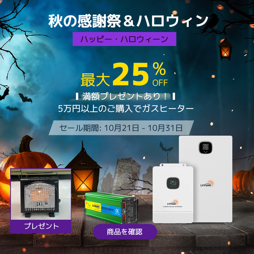 🎃 LVYUANはインバーター製造において、10年以上の経験と技術が持って、「高品質な製品をよりお求めやすい価格で提供」という壮大な理想のもと、あらゆる人に、清潔エネルギーを享受し、地球環境を守るために、パワーインバーターのほか、太陽光発電システムやポータブル電源など、アウトドア用品や防災用品を中心に幅広く全力でサポートを行っております。詳しくは公式サイト(https://lvyuan.jp/)をご覧ください。