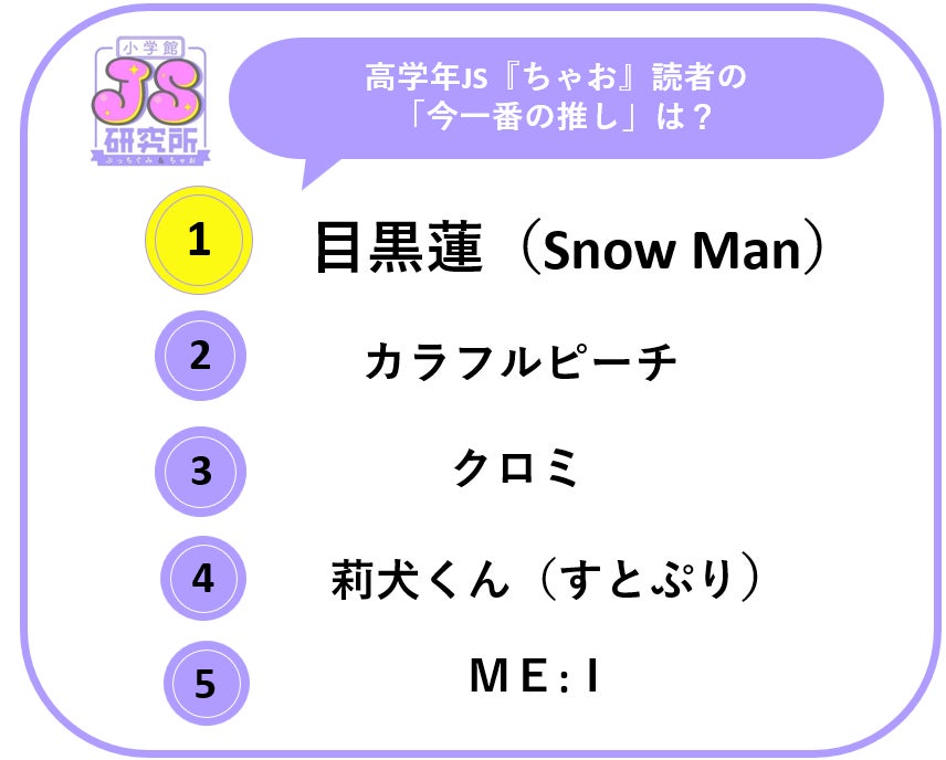 ★JSに人気No.1の推しは目黒蓮(Snow Man)さん!上位にはキャラクターやYouTuberがランクイン!