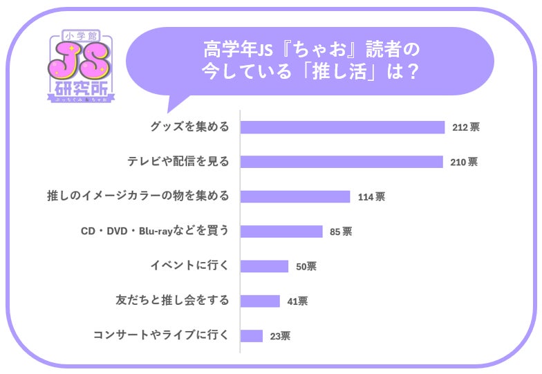 2024年6月号の「ちゃお」で、高学年JSが中心の「ちゃお」読者500名に「推し」に関する調査を実施しました。イマドキJSも夢中になる「推し活」トレンドを発表します。