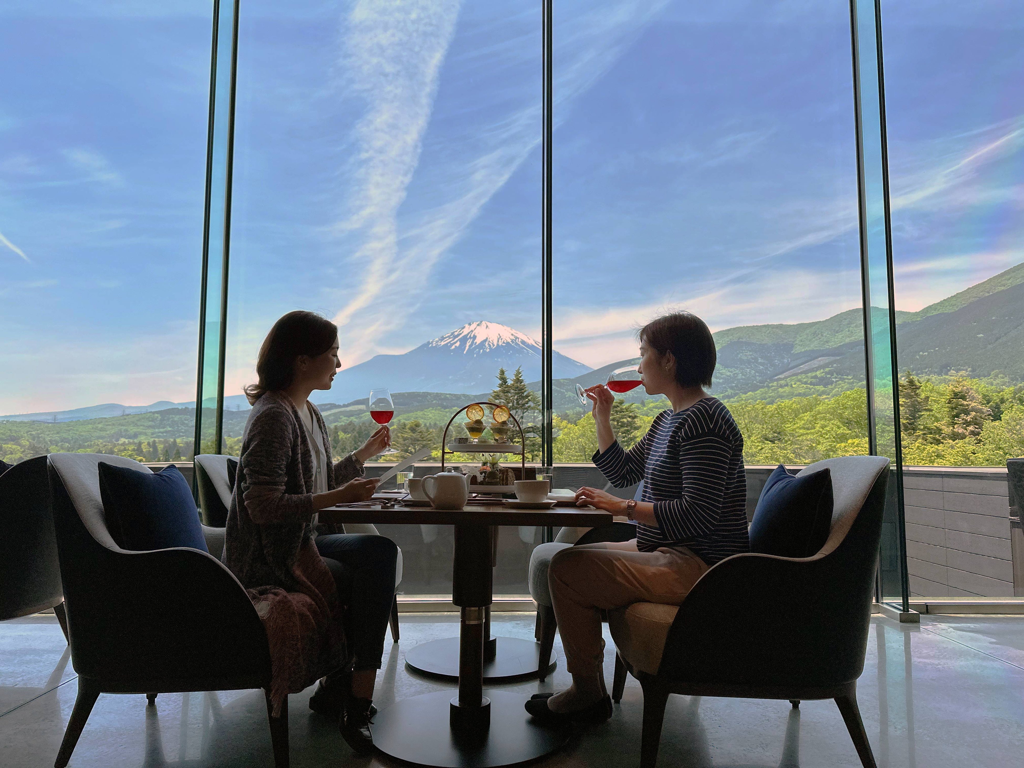 アフタヌーンティーが提供される「TROFEOラウンジ」では、富士山の絶景を誇り、裾野に広がる新緑の景色が楽しめます。また、例年4月初旬は富士霊園で桜が満開を迎え、ソメイヨシノや山桜など約8000本が咲き誇ります。日本さくら名所100選にも選ばれたこの圧巻の景色は、ホテルからはわずか車で片道3分で、徒歩でも20分のため心地よい散歩が楽しめる距離にあります。お花見の帰り道にティータイムを楽しみに、ぜひお越しください。