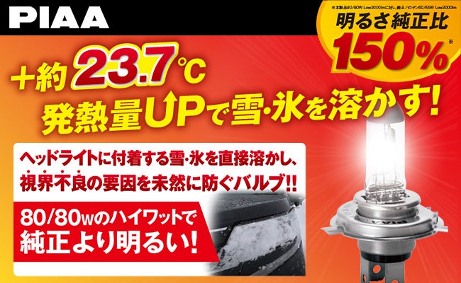 【新登場】ヘッドライトに付着する雪・氷を溶かし視界不良の要因を未然に防ぐ「PIAA 融雪ハロゲンバルブ」