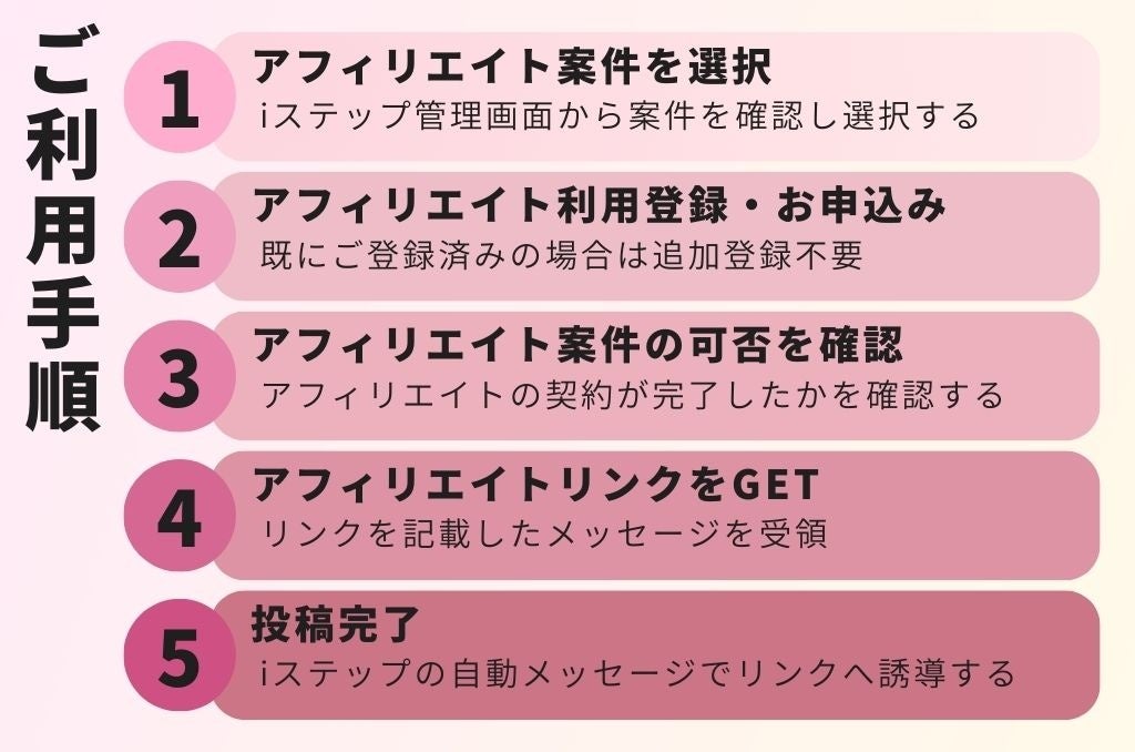 このプラットフォームに掲載される案件はすべてiステップをご活用いただけます。安心・安全なアフィリエイト案件で収益を上げることが可能です。 -