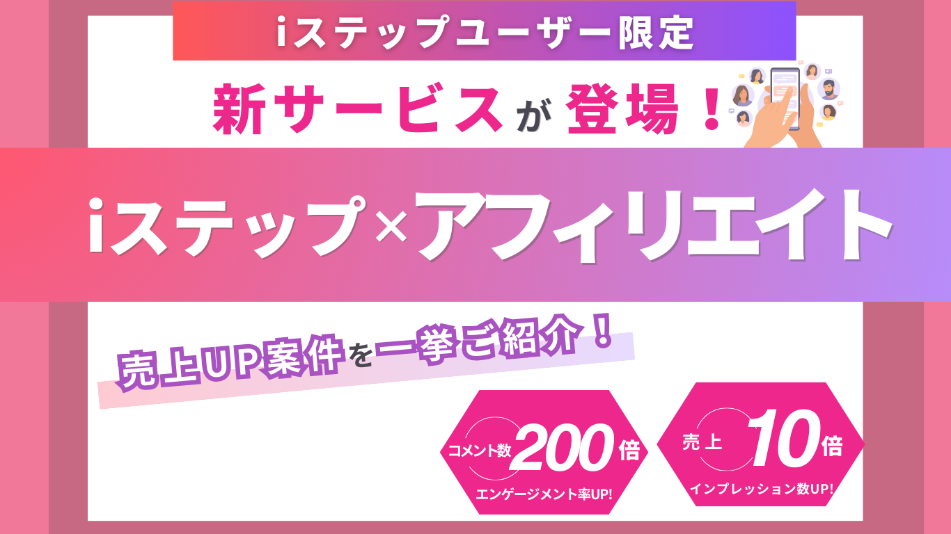 新機能リリースを記念し、2月13日から2月29日までの17日間、特別キャンペーンとしてiステップ公式LP誘導アフィリエイトプログラムを実施します。