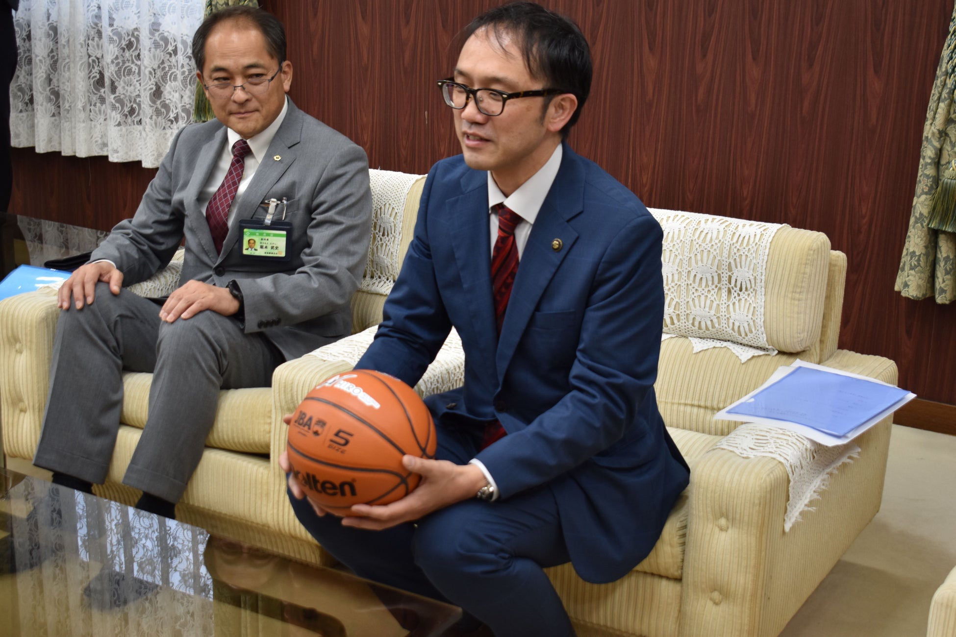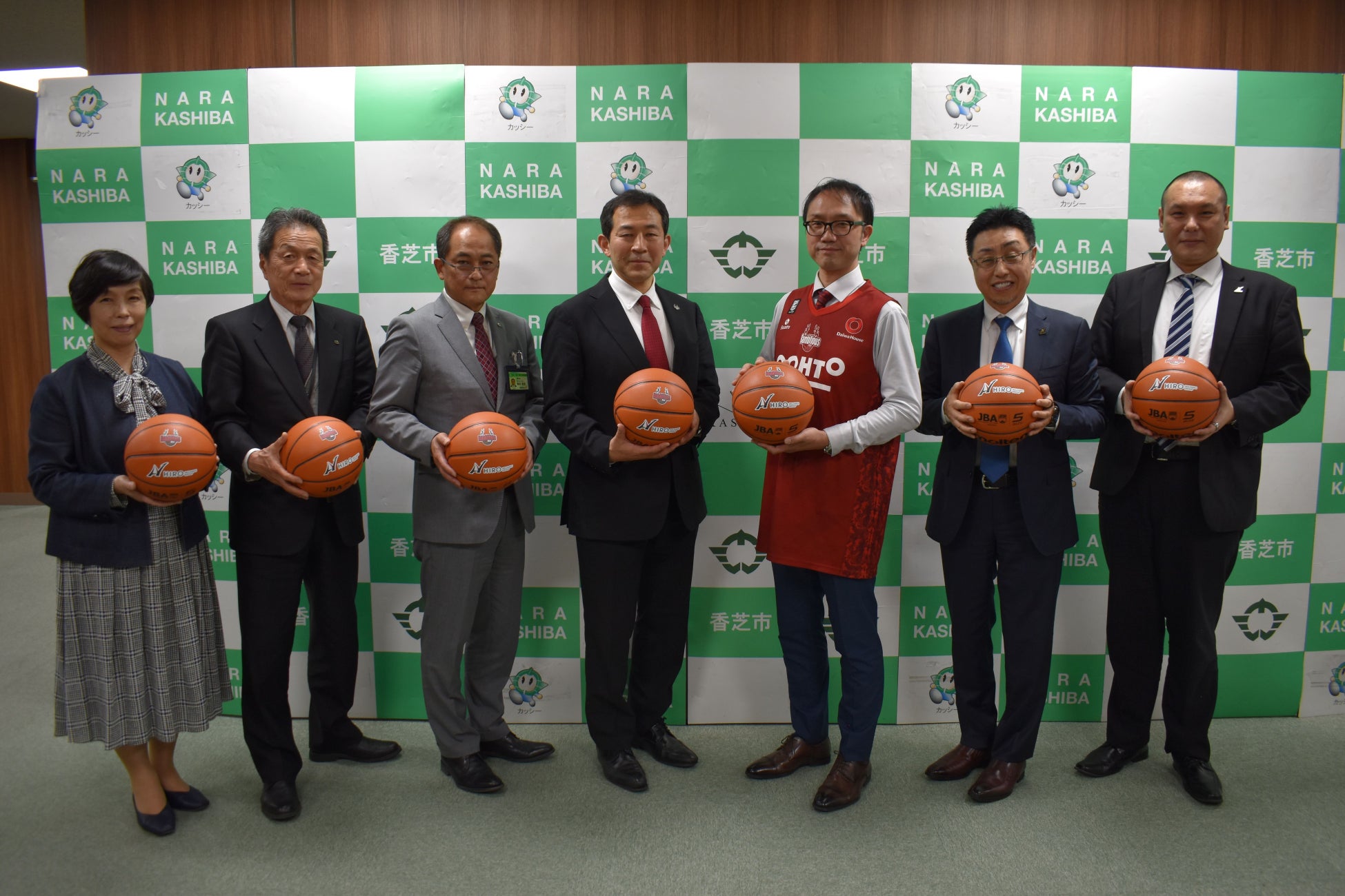 4月3日には、香芝市役所にてボール贈呈式が行われ、株式会社ヒロホールディングス様から香芝市へバスケットボールが寄贈されました。