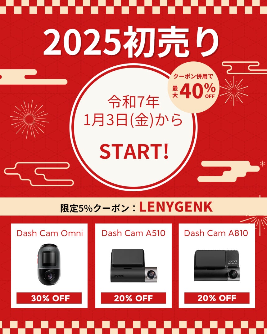 最大40%OFFの初売りセールや豪華プレゼントが当たるSNSキャンペーンで、新年のドライブをもっと楽しく!