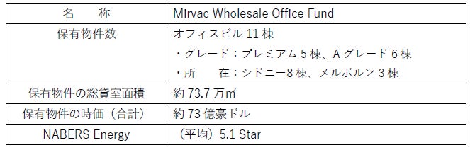 豪州・オフィスビルファンド「Mirvac Wholesale Office Fund」に出資
